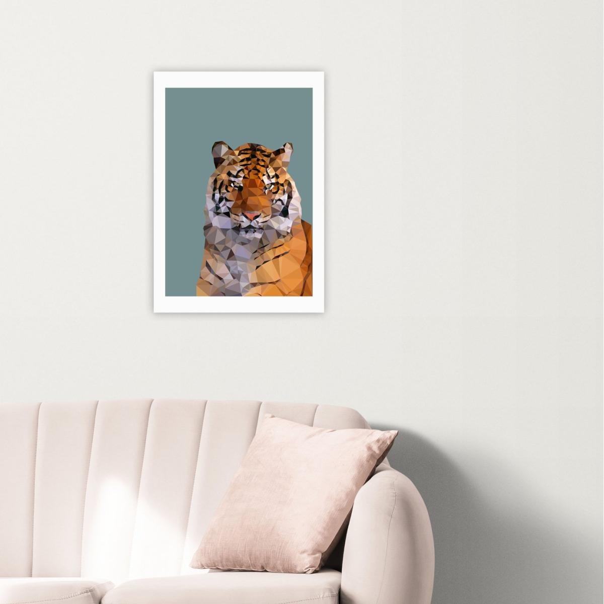 I really appreciate this piece because of its bold, geometric design - it adds a contemporary edge to any space. It works particularly well in modern, minimal interiors where it can act as a focal point, or in eclectic settings that embrace statement artwork. To style it effectively, consider pairing it with neutral walls to make the colours pop, and hang it at eye level for maximum impact. It’s also versatile enough to work above a sofa, console table, or even in a walk-in wardrobe to inject some personality. Its unframed A2 size offers a clean, streamlined look that’s easy to complement with other modern accessories, making it a great choice for adding a touch of wild character without overpowering the room.