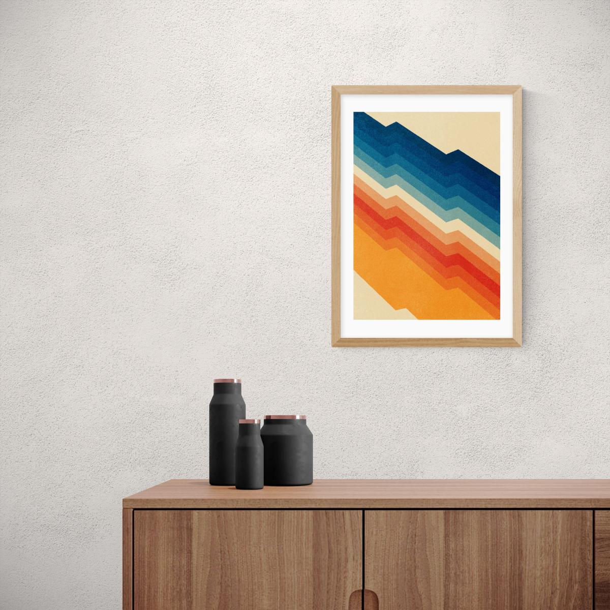 The barricade print offers a bold, geometric splash of colour that works particularly well in contemporary or minimalist interiors. I love how the vivid orange, blue, and red tones can energise a neutral space, making it ideal for living rooms or home offices. When styling, consider hanging it above a simple sideboard or console table to let the artwork stand out. For a cohesive look, pair it with accessories that pick out its colours-think cushions or vases in matching shades. Practical tip: framing in natural wood or sleek black can enhance its modern appeal, ensuring it remains a focal point without feeling overwhelming.