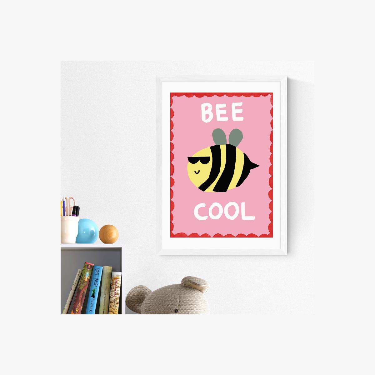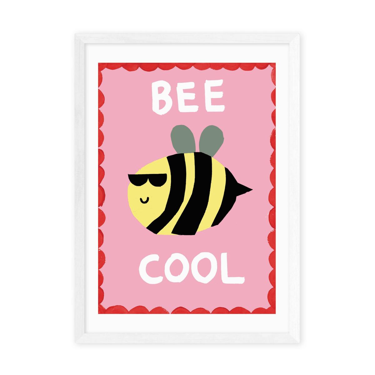 * Playful Bee design * Brightly coloured * Printed on 210gsm acid-free archival paper * Available in A1, A2, A3 & A4 size * Frame options: black, white and oak wood effect * Available in unframed option This playful 'Bee Cool' print brings an effortlessly stylish design and bright colours to your space. Printed on archival paper for a fade-resistant finish, this print is available in a range of sizes and solid Obeche wood frame options, or unframed for you to display as you wish.