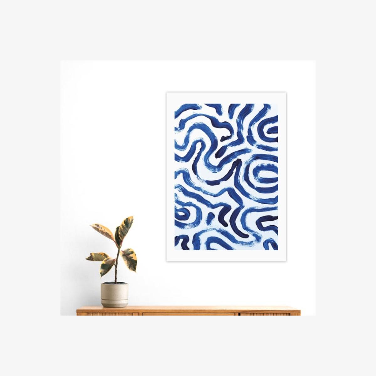 * Blue abstract design * Portrait orientation * Printed on 210gsm acid-free archival paper * Available in A1, A2, A3 & A4 sizes * Frame options: black, white and oak wood effect * Available in an unframed option This abstract design by Dan Hobday features a calming blue colour palette and a pared-back style, perfect for modern living spaces. Choose from a range of sizes and frame styles - from unframed for your own display choices, to solid wood frames in an array of finishes.
