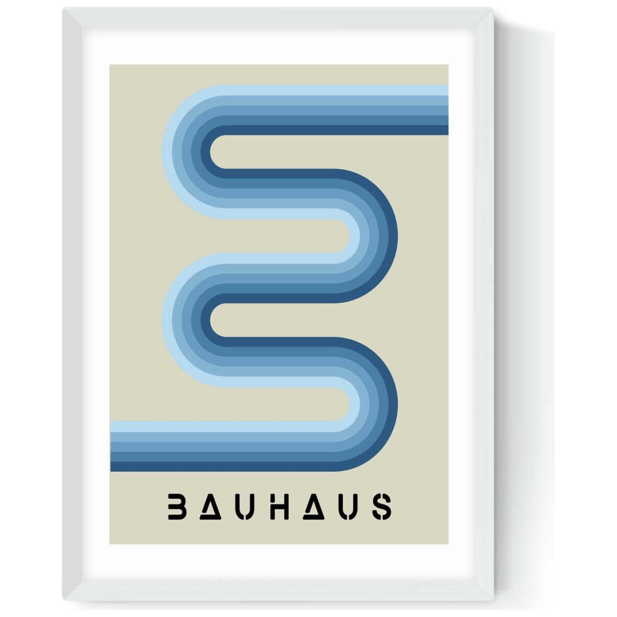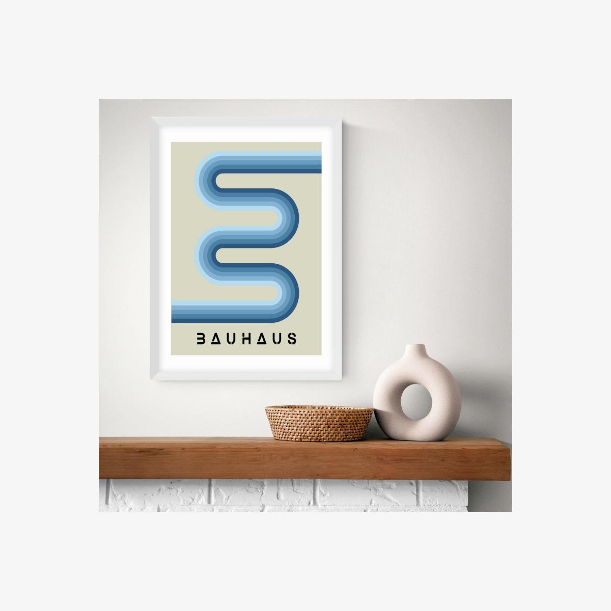 I love this blue striped Bauhaus-style print for its clean, geometric aesthetic, which adds a contemporary edge to any space. It works particularly well in minimalist or modern interiors where sharp lines and bold shapes are key, but it can also provide a striking contrast within more eclectic setups. Practical styling tips include pairing it with other monochrome or primary colours to enhance its vibrancy, or placing it above a simple sideboard or console to create a focal point. Its white frame also ensures it blends seamlessly into various colour schemes, making it versatile for living rooms, offices, or even kitchens. Keep accessories minimal to let the artwork speak for itself and create a balanced, stylish display.