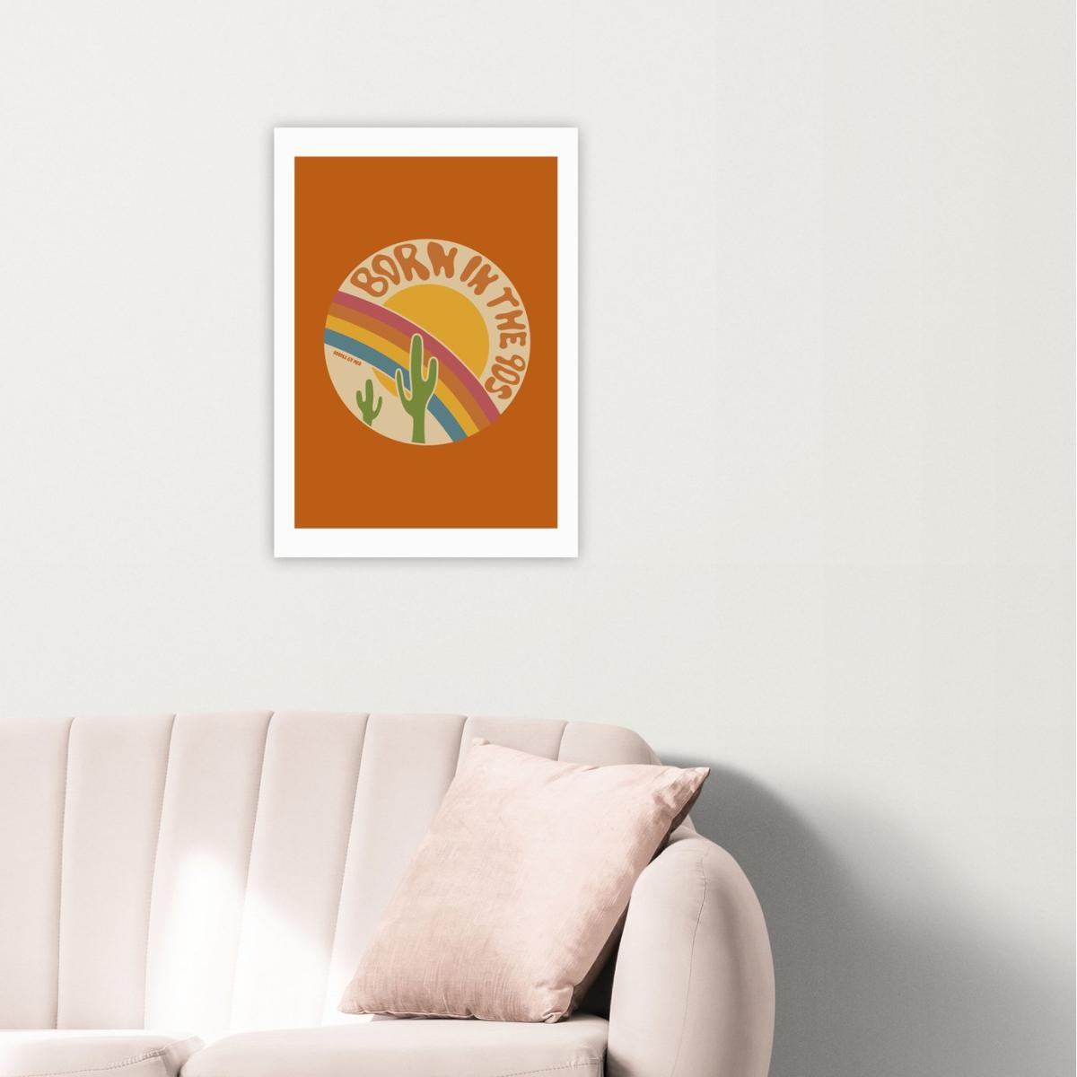 I love this print for its nostalgic vibe and vibrant colour palette, making it a playful yet stylish addition to a variety of interiors. It works particularly well in casual living spaces, children's rooms, or creative home offices where you want to inject some personality. For styling, consider pairing it with mid-century or boho furniture, keeping other décor simple to let the print stand out. Mount it above a sofa or console table using a clean, minimalist frame to keep the focus on the artwork. Its bold design and fun retro aesthetic make it an easy piece to blend into eclectic schemes or to brighten up a modern, pared-back scheme.