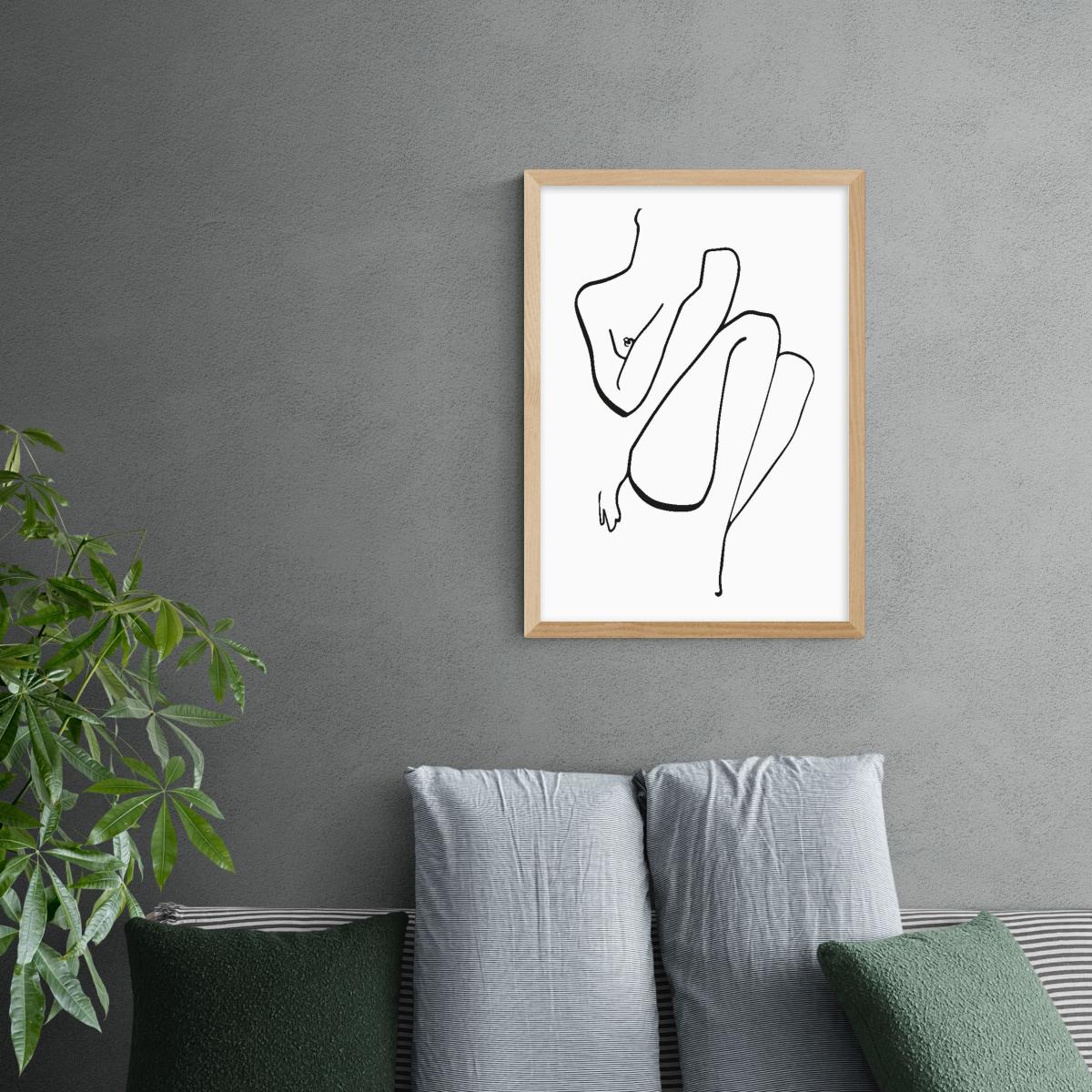 Embrace minimalist style and figurative line drawings with this simple monochrome nude outline drawing by Mudrowska. Made using a Giclee printing process to prevent fading, this print can add curiosity and style to your home. Each design is available in four print sizes and a variety of frame options, including unframed, so you can display your artwork however you wish.