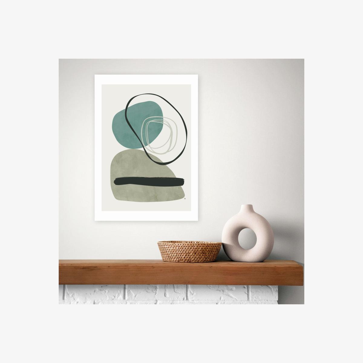I love this Calo art print because of its understated colour palette and modern, abstract design, which makes it versatile for various interiors. It works particularly well in minimalist or contemporary spaces, adding a touch of subtle sophistication without overwhelming the decor. For practical styling, consider framing it in a sleek, slim border and placing it above a neutral sideboard or console to create a focal point. Pair it with other understated accessories in muted tones to maintain a cohesive and calm atmosphere. This piece is great for dressing up a living room or bedroom wall without dominating the space.