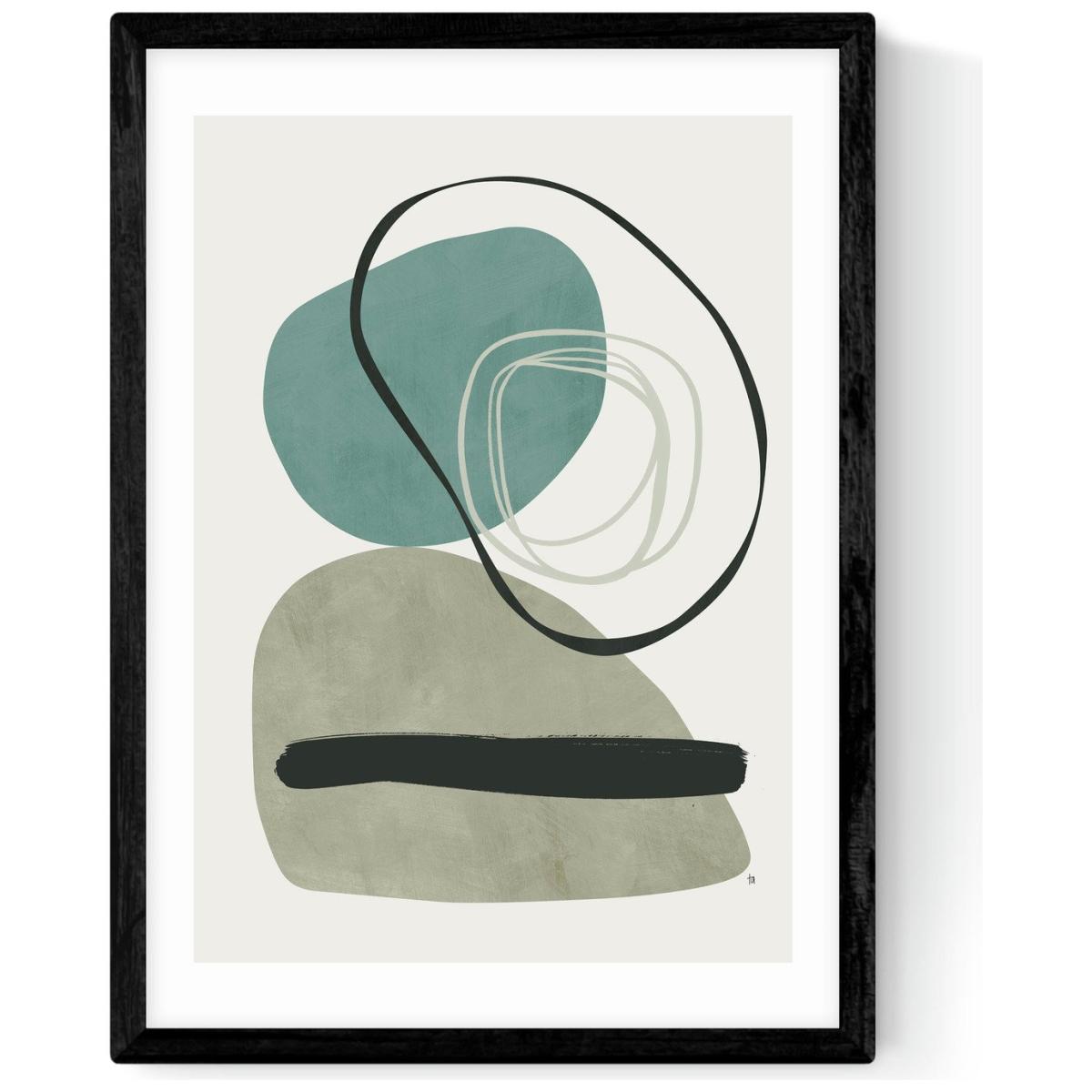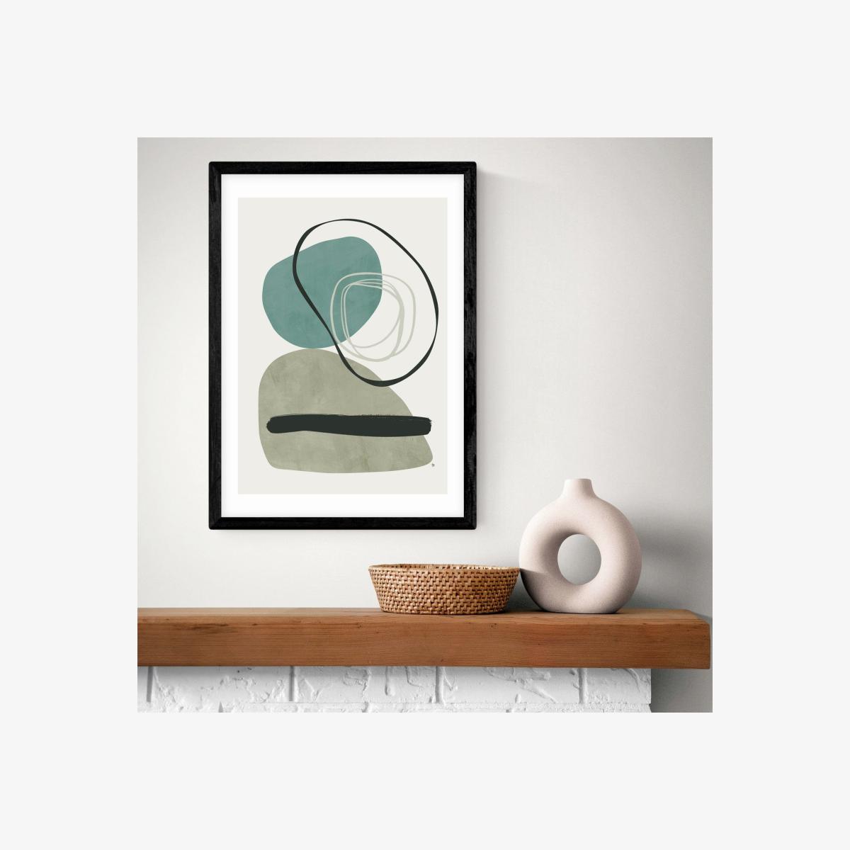 I love this piece for its minimalist style and versatility. The abstract shapes and muted colour palette make it an ideal addition to contemporary or Scandinavian-inspired interiors, but it can also work well in eclectic spaces. The black frame adds a touch of sophistication and helps the artwork stand out against light or neutral walls. When styling, consider placing it above a console table or sideboard to create a focal point, and pairing it with other monochrome or textured accessories for a balanced look. Its size makes it suitable for most rooms, and it's easy to mix and match with both colourful and understated décors.