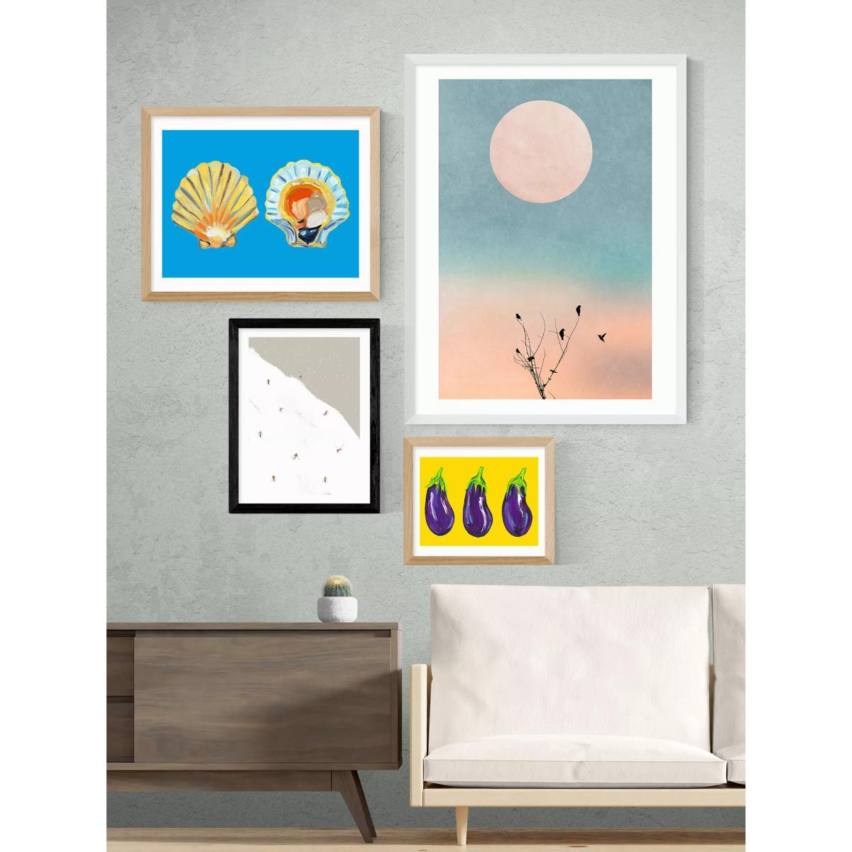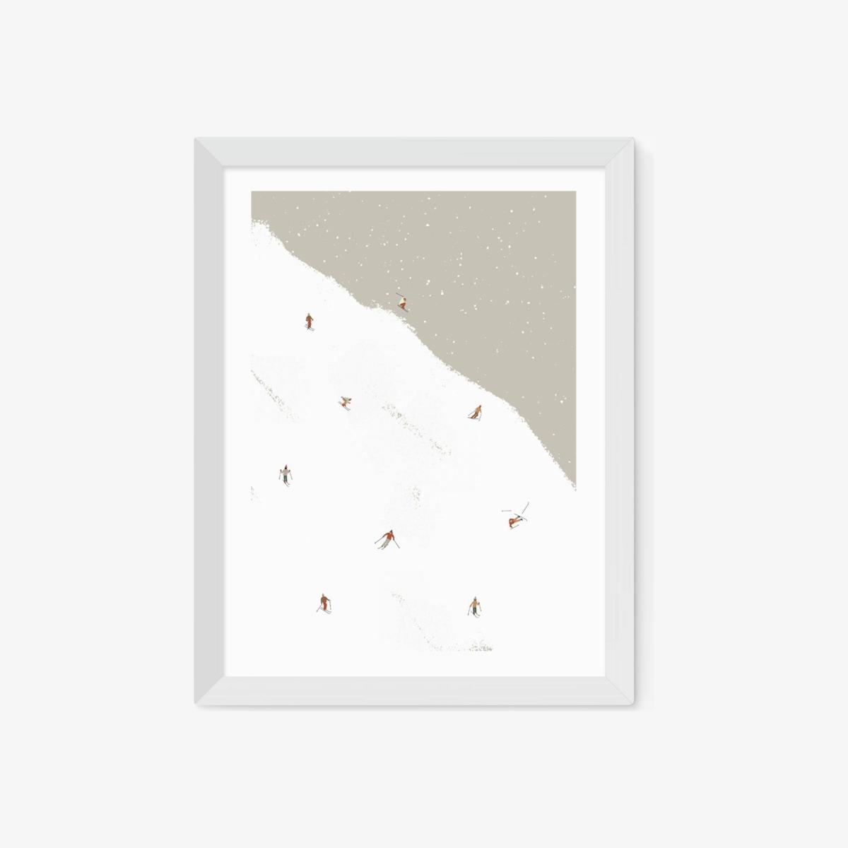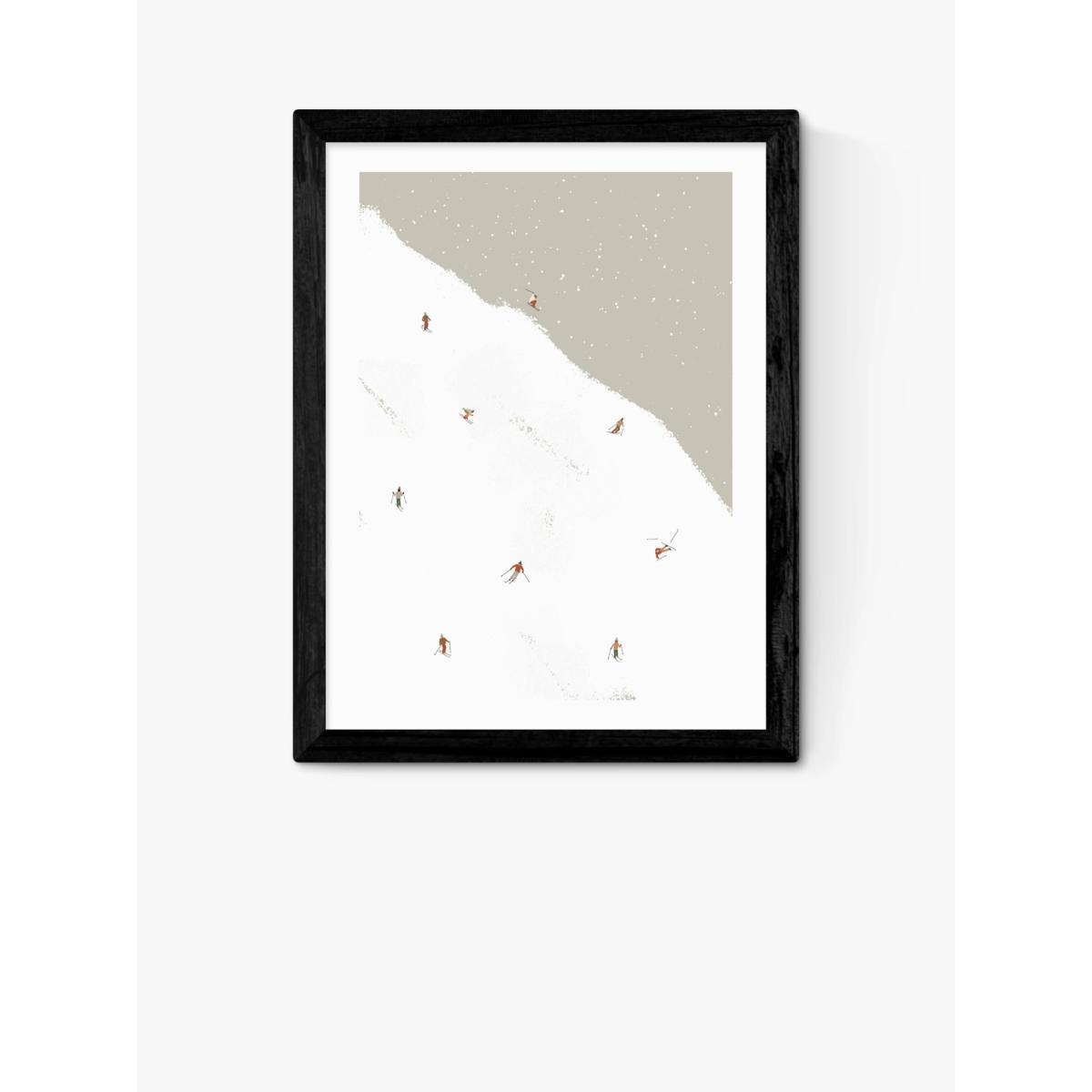 This engaging minimalist skiing print from Coit Collective will add the calmness of the slopes to any wall space. The giclée art printing process and 210gsm acid-free archival paper create an exhibition-quality art print with long-lasting colours that more closely resemble the artist's materials and tones. A digital form of the original work is stored and then printed using a commercial printer and pigment-based inks. The print is presented with an acrylic glaze that's optically the same as glass yet lighter in weight, making it easier and safer to hang. Ready to hang on your wall, it's made in the UK and framed in obeche wood in a choice of finishes. Coit Creative was founded by Ali Hooten, an illustrator, surface designer and educator who can be found cosy at home drawing or climbing, skiing and playing in the mountains. Many of her illustrations are inspired by the wild places she spends so much time in and advocating for around the Rocky Mountain West of America. Drawing from a past career as an architect and university instructor, Ali brings a level of conceptual thinking and technical abilities to every project. She loves creating new work and seeing her art come to life on products. She is especially drawn to minimal and vector-based artwork, simplifying larger scenes into hand-drawn shapes and forms. Have you thought about wall hooks and fittings? EAST END PRINTS picture frames are usually one of two frame widths: medium frame (2.2cm) and wide frame (3.5cm). The frame width varies across the range. The medium frame measures 2.2cm across and comes in the following four sizes: 33.4 x 28.4cm 43.4 x 33.4cm 53.4 x 43.4cm 83.4 x 63.4cm The wide frame measures 3.5cm across and comes in the following four sizes: 36 x 31cm 46 x 36cm 56 x 46cm 86 x 66cm