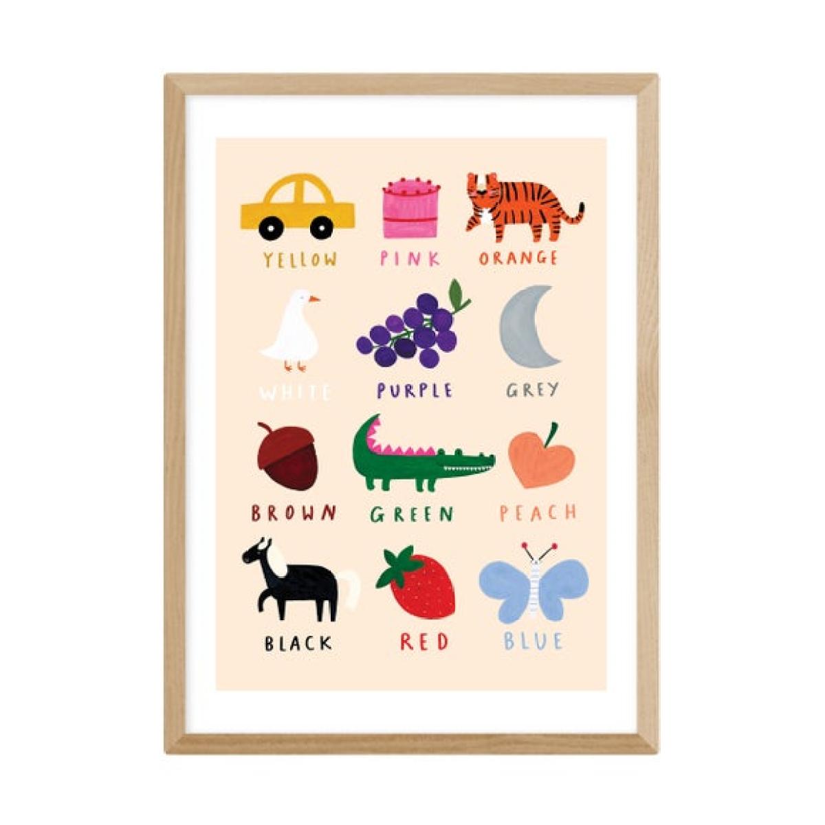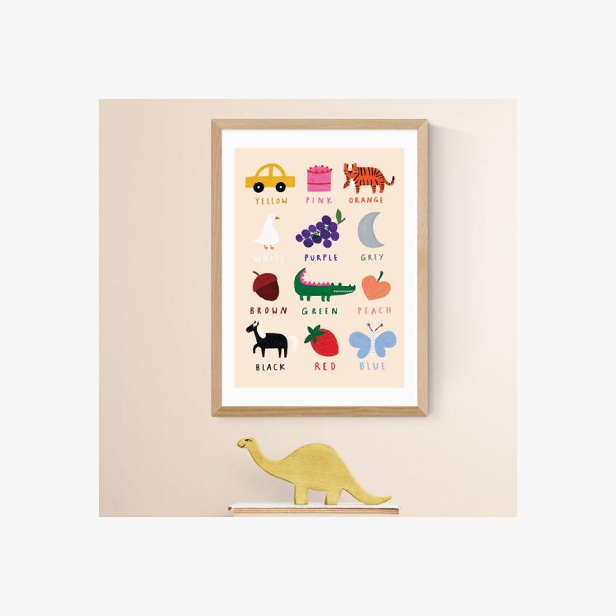 I really like this colour chart print for its playful and educational vibe, making it perfect for a children’s bedroom or playroom. Its clean, simple design and bright primary colours lend themselves well to modern, minimalist interiors, or well-balanced eclectic spaces. For styling, consider placing it in a frame with a neutral mat to let the colours pop, or pair with other colourful accessories for a lively feel. It also works beautifully when hung above a kid’s desk or wall-mounted shelf, creating a cheerful and engaging focal point. Practical tip: keep other artwork simple around it to let this cheerful print stand out without overwhelming the space.