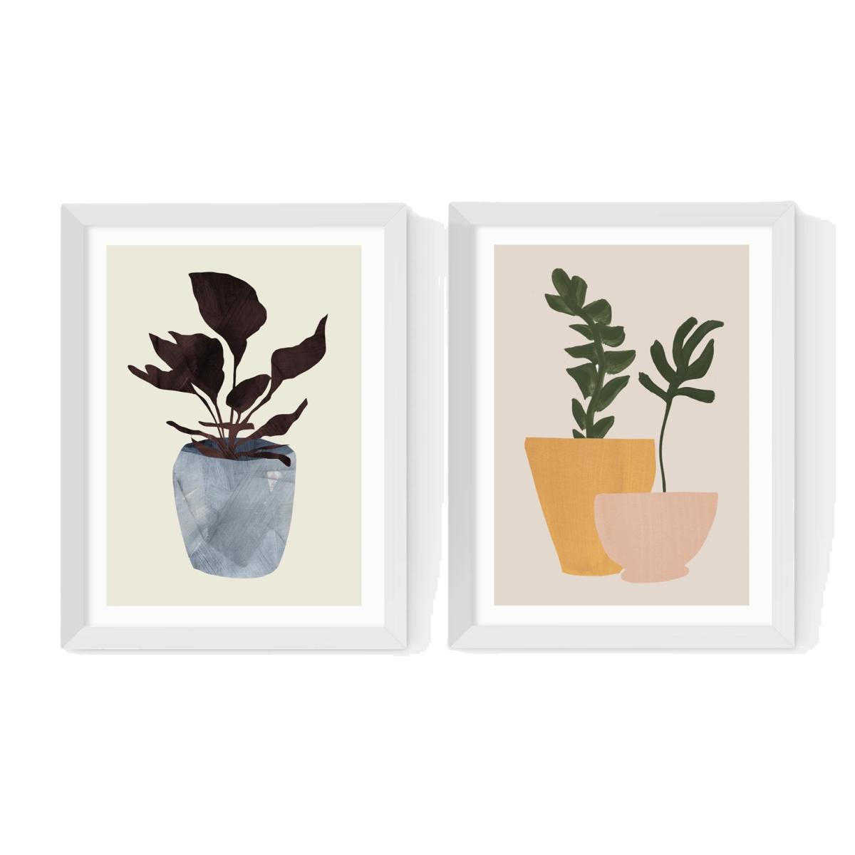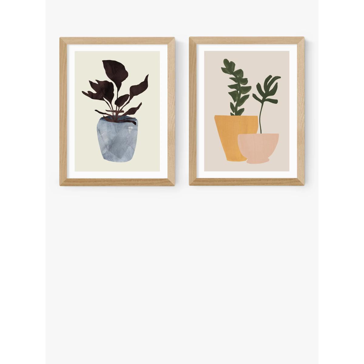 A colourful pair of 'Plant Pot' prints by Dan Hobday. The giclée art printing process and 210gsm acid-free archival paper create an exhibition-quality art print with long-lasting colours that more closely resemble the artist's materials and tones. A digital form of the original work is stored and then printed using a commercial printer and pigment-based inks. Made in the UK, each print is presented with an acrylic glaze that's optically the same as glass yet lighter in weight making it easier and safer to hang. Ready to hang on your wall, it's framed in obeche wood in a choice of finishes. Working from his home studio, Dan Hobday produces original hand-painted artwork. Dan has a passion for minimal, contemporary art. Working in inks, acrylics, digital and mixed media his diverse style spans many subjects. Have you thought about wall hooks and fittings? EAST END PRINTS picture frames are usually one of two frame widths: medium frame (2.2cm) and wide frame (3.5cm). The frame width varies across the range. The medium frame measures 2.2cm across and comes in the following four sizes: 33.4 x 28.4cm 43.4 x 33.4cm 53.4 x 43.4cm 83.4 x 63.4cm The wide frame measures 3.5cm across and comes in the following four sizes: 36 x 31cm 46 x 36cm 56 x 46cm 86 x 66cm
