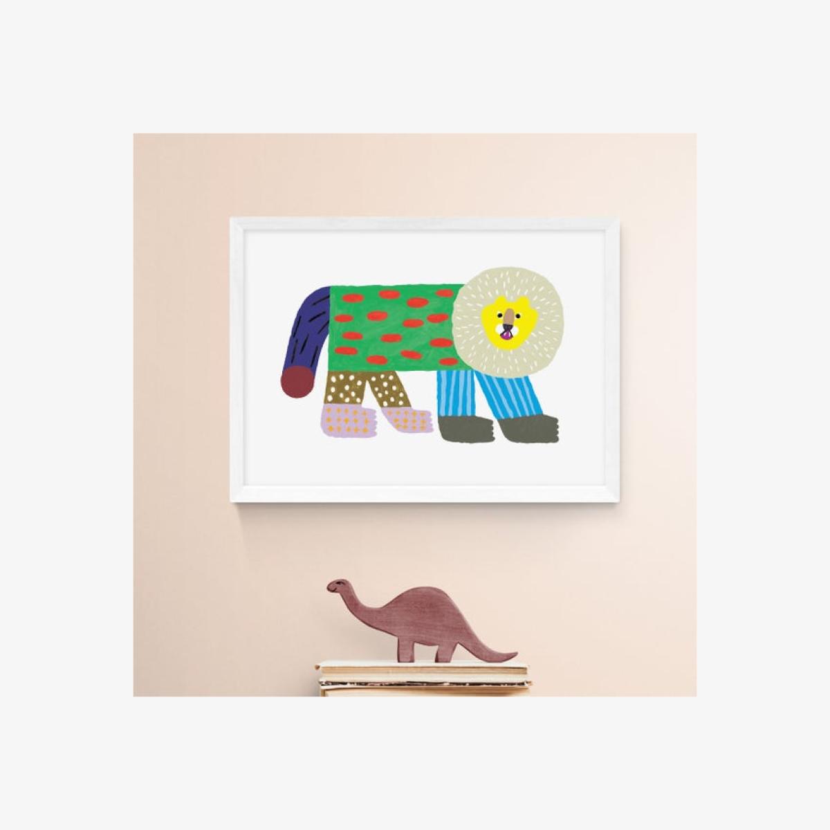 I love the bold, playful design of the East End Prints Flash Lion print - it really brings a fun, contemporary touch to a space. Its vibrant colours and whimsical illustration make it especially suitable for children's rooms or playful areas, but it can also work well in more eclectic or modern interiors to add a pop of colour and personality. Practical styling tips include pairing it with simple, neutral surroundings to let the artwork stand out, or combining it with other bold accessories for a lively, cohesive look. Framing it in a slim, white edge like shown helps keep the focus on the print itself, making it an easy yet impactful decorating piece.