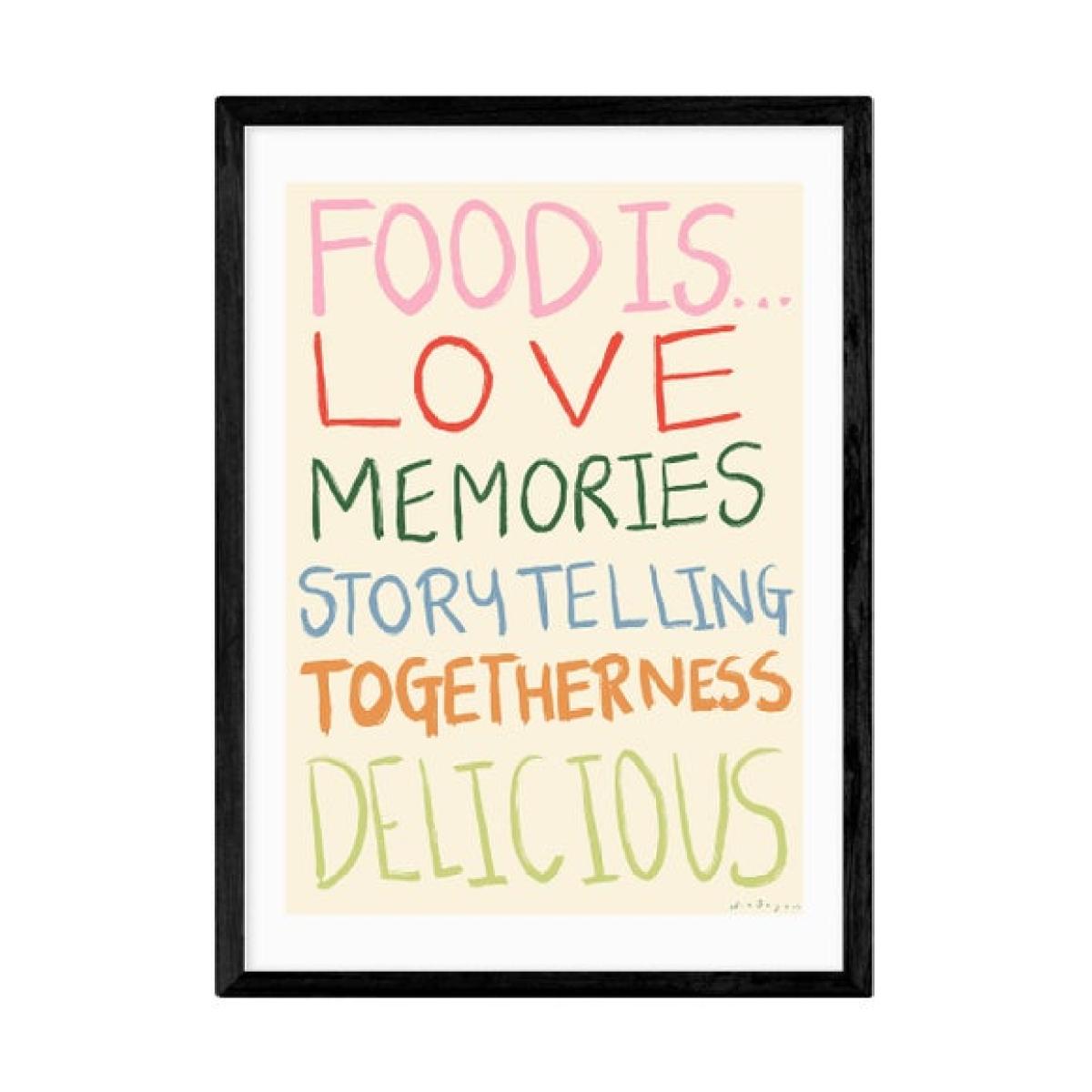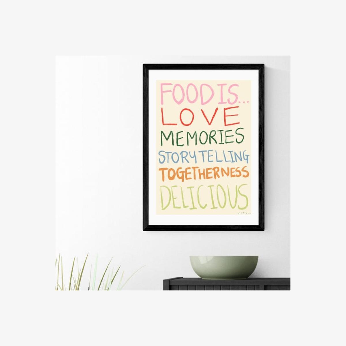 * Artwork by Nia Beynon * Typography style * Available in A1, A2, A3 & A4 sizes * Giclee printing process lasting up to 70 years from fading * Printed on 210gsm acid-free archival paper * Frames available: black, white and oak effect * Also available unframed Bold, fun, and full of flavour — this typography print by Nia Beynon celebrates the joy of food with striking style. A perfect statement piece to spice up kitchens, dining areas, or any food lover’s space. East End Prints are proudly printed and made in the UK, with a royalty paid to the artist for every print sold.