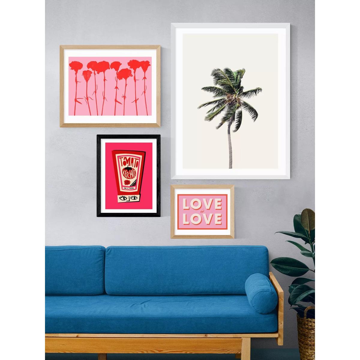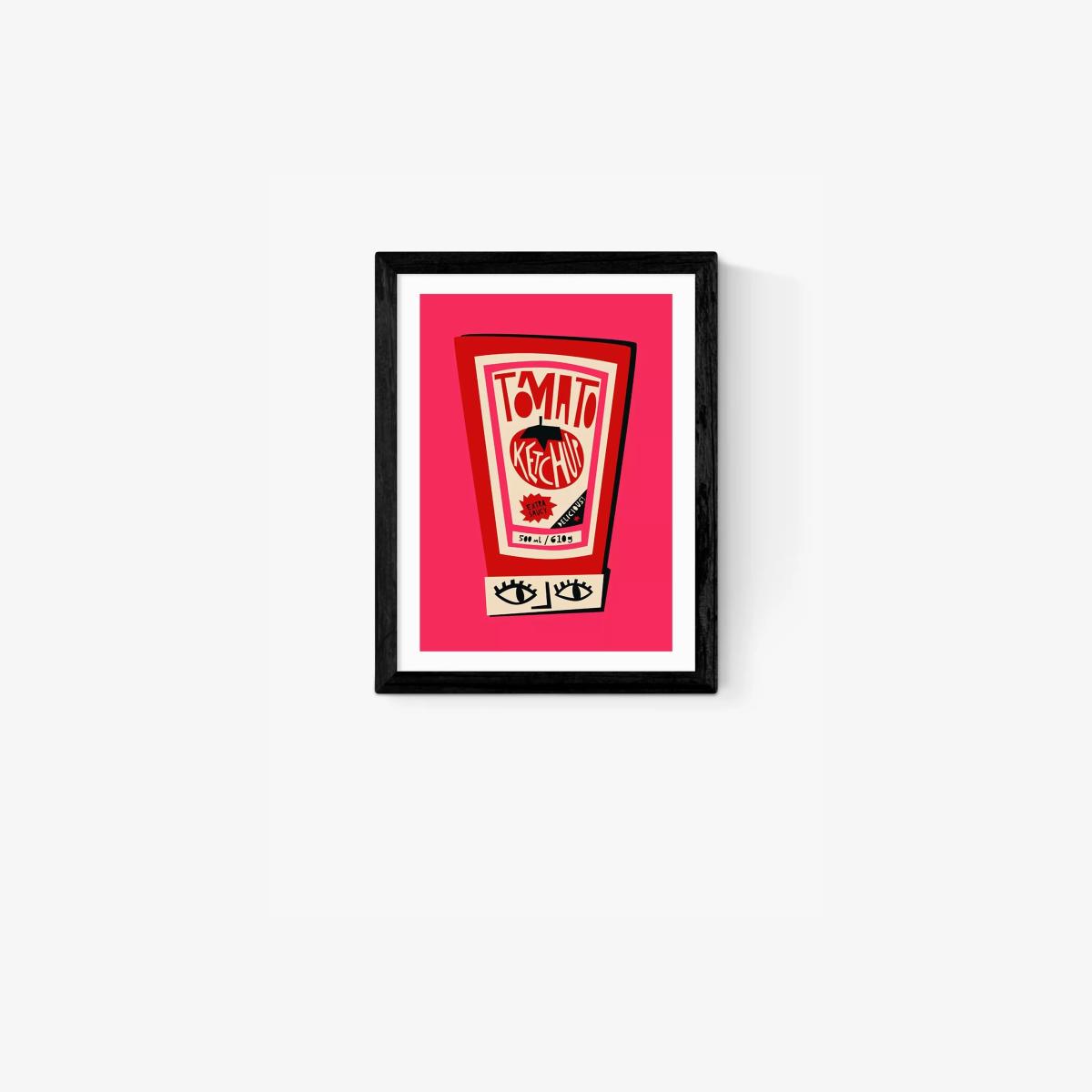 Foodie graphic print, 'Tomato Ketchup' by Fox and Velvet. The giclée art printing process and 210gsm acid-free archival paper create an exhibition-quality art print with long-lasting colours that more closely resemble the artist's materials and tones. A digital form of the original work is stored and then printed using a commercial printer and pigment-based inks. Made in the UK, the print is presented with an acrylic glaze that's optically the same as glass yet lighter in weight making it easier and safer to hang. Ready to hang on your wall, it's framed in obeche wood in a choice of finishes. Hailing from opposite sides of the globe, illustrator duo Fox & Velvet take inspiration from their combined love of travel, music and nature to create quirky mid-century inspired art. A constant soundtrack of jazz, soul, electronic and '80s music accompanies them throughout their days, while spare time is spent hunting for retro treasures in vintage shops. Have you thought about wall hooks and fittings? EAST END PRINTS picture frames are usually one of two frame widths: medium frame (2.2cm) and wide frame (3.5cm). The frame width varies across the range. The medium frame measures 2.2cm across and comes in the following four sizes: 33.4 x 28.4cm 43.4 x 33.4cm 53.4 x 43.4cm 83.4 x 63.4cm The wide frame measures 3.5cm across and comes in the following four sizes: 36 x 31cm 46 x 36cm 56 x 46cm 86 x 66cm