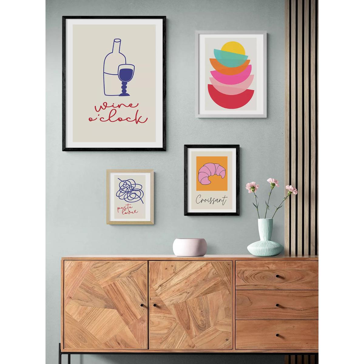 Gosh, is it that time already? Looking for a gift for a wine lover? This 'Wine o'clock' kitchen print by Inoui is just the ticket. The giclée art printing process and 210gsm acid-free archival paper create an exhibition-quality art print with long-lasting colours that more closely resemble the artist's materials and tones. A digital form of the original work is stored and then printed using a commercial printer and pigment-based inks. The print is presented with an acrylic glaze that's optically the same as glass yet lighter in weight making it easier and safer to hang. Ready to hang on your wall, it's framed in obeche wood in a choice of finishes. Inoui is the work of self-taught artist Kinga from the South of France. Taking inspiration from design styles including Minimalism, Danish Modern/Mid-Century Modern, her style is usually naive, abstract, minimalist and often adapted to current trends. She enjoys working with shapes and colours and playing with typography. Have you thought about wall hooks and fittings? EAST END PRINTS picture frames are usually one of two frame widths: medium frame (2.2cm) and wide frame (3.5cm). The frame width varies across the range. The medium frame measures 2.2cm across and comes in the following four sizes: 33.4 x 28.4cm 43.4 x 33.4cm 53.4 x 43.4cm 83.4 x 63.4cm The wide frame measures 3.5cm across and comes in the following four sizes: 36 x 31cm 46 x 36cm 56 x 46cm 86 x 66cm