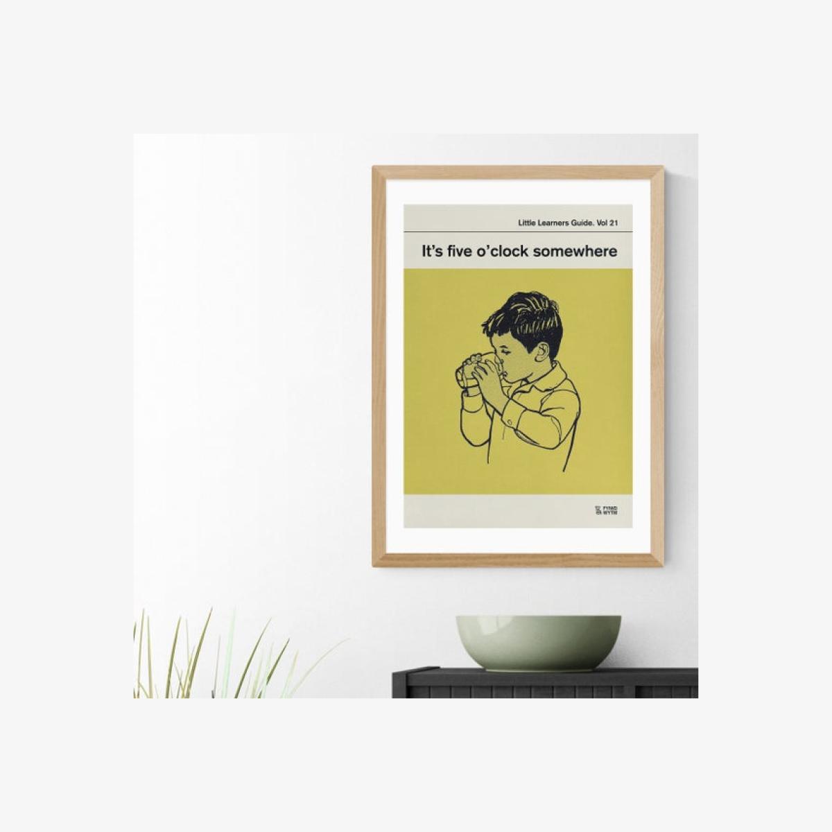 I really like Its Five O’Clock Somewhere for its playful and modern vibe. It works especially well in casual or contemporary interiors, such as a home bar area, living room, or even a kitchen with a laid-back feel. The illustration adds a touch of humour and personality, making it a great conversation starter. When styling, consider pairing it with minimalist frames or placing it above a sideboard or mantel to create a focal point. To keep things balanced, pair it with other simple artwork or decor in neutral tones, letting the print stand out without feeling overwhelming. Its fun, relaxed tone makes it a versatile piece that can effortlessly inject charm and character into your space.