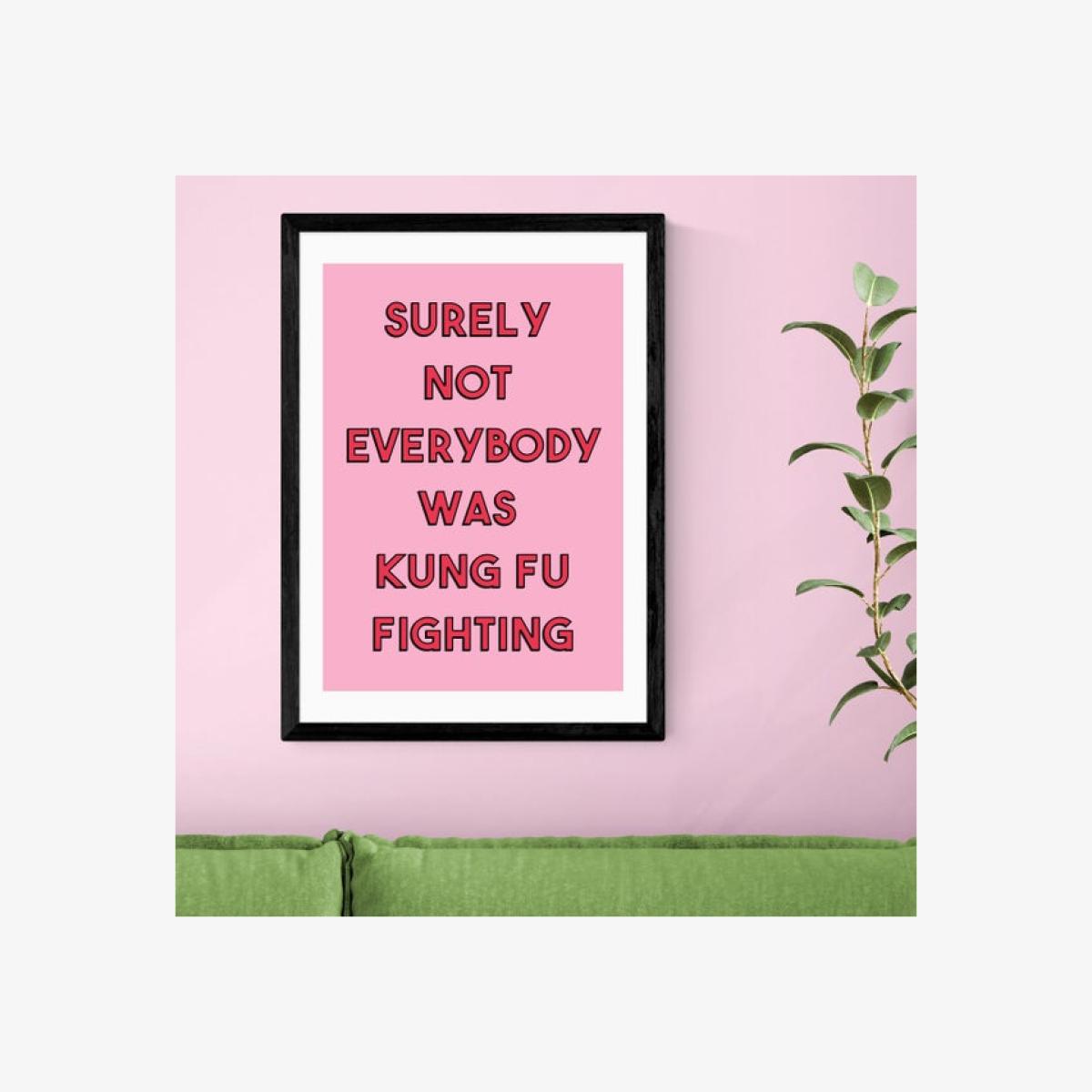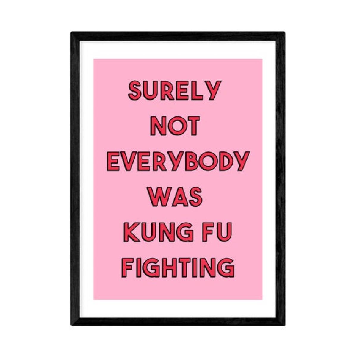* Fun, Modern Design * Printed on 210gsm Acid-Free Paper * Available in A1, A2, A3, & A4 Sizes * Frame Options: Black, White, Oak * Available in Unframed Option * Made in the UK Kick up your wall art with the East End Prints Kung Fu Fighting Print by Studio Eleni. This dynamic typographic design is available in A1–A4, giclée printed on archival paper, and can be framed or unframed. Proudly made in the UK, supporting artists.