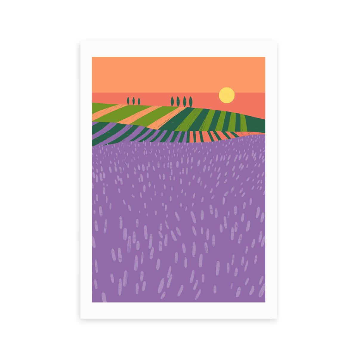 Transport yourself to vibrant purple fields of lavender and contrasting coral sunsets with this landscape scene by Anek. Made using a Giclee printing process to prevent fading, this wonderful print is ideal for a living space or hallway and will stay vibrant for years to come. Each design is available in four print sizes and a variety of frame options, including unframed, so you can display your artwork however you wish.