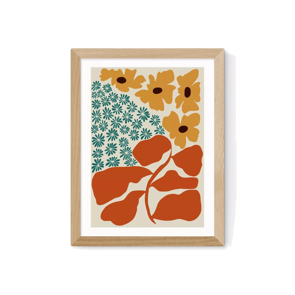 Turn any space in your home into a floral fiesta with this exotic print from Miho Art Studio. The giclée art printing process and 210gsm acid-free archival paper create an exhibition-quality art print with long-lasting colours that more closely resemble the artist's materials and tones. A digital form of the original work is stored and then printed using a commercial printer and pigment-based inks. The print is presented with an acrylic glaze that's optically the same as glass yet lighter in weight, making it easier and safer to hang. Ready to hang on your wall, it's made in the UK and framed in obeche wood in a choice of finishes. Miho Art Studio is the work of illustrator and printmaker, Pooja Singh. Living in India, Pooja grew up surrounded by hills and nature. It's here that she developed a love of plants and flowers. A fashion and styling professional for seven years, she changed careers to work in the print industry. As a result, Pooja started her own studio, Miho Art Studio. She now lives and works from her home studio in India. Have you thought about wall hooks and fittings? EAST END PRINTS picture frames are usually one of two frame widths: medium frame (2.2cm) and wide frame (3.5cm). The frame width varies across the range. The medium frame measures 2.2cm across and comes in the following four sizes: 33.4 x 28.4cm 43.4 x 33.4cm 53.4 x 43.4cm 83.4 x 63.4cm The wide frame measures 3.5cm across and comes in the following four sizes: 36 x 31cm 46 x 36cm 56 x 46cm 86 x 66cm