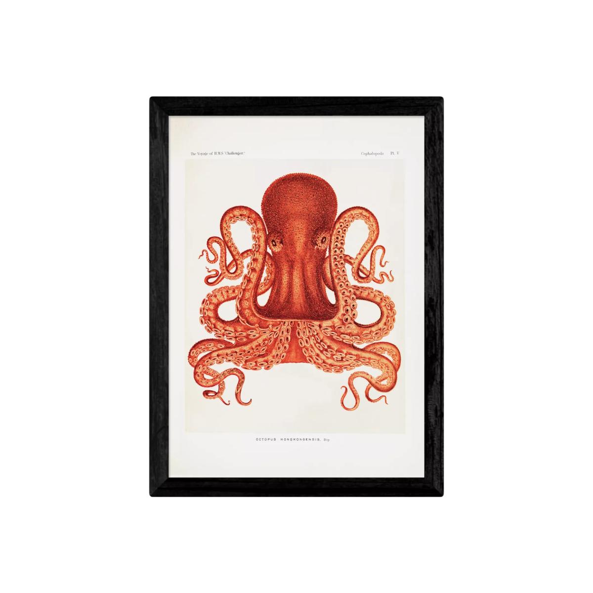 EAST END PRINTS have collaborated with the Natural History Museum to create a beautiful collection of illustrative collages and prints from the museum's archives. This illustrated octopus is based on an original drawing from the scientific discoveries of the voyage of HMS Challenger over 150 years ago. The giclée art printing process and 210gsm acid-free archival paper create an exhibition-quality art print with long-lasting colours that more closely resemble the artist's materials and tones. A digital form of the original work is stored and then printed using a commercial printer and pigment-based inks. The print is presented with an acrylic glaze that's optically the same as glass yet lighter in weight making it easier and safer to hang. Ready to hang on your wall, it's framed in obeche wood in a choice of finishes. Have you thought about wall hooks and fittings?