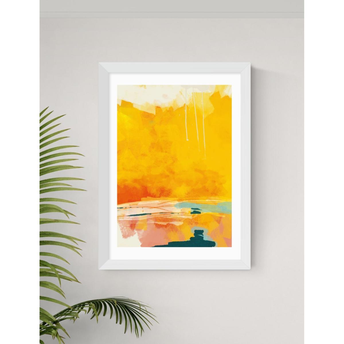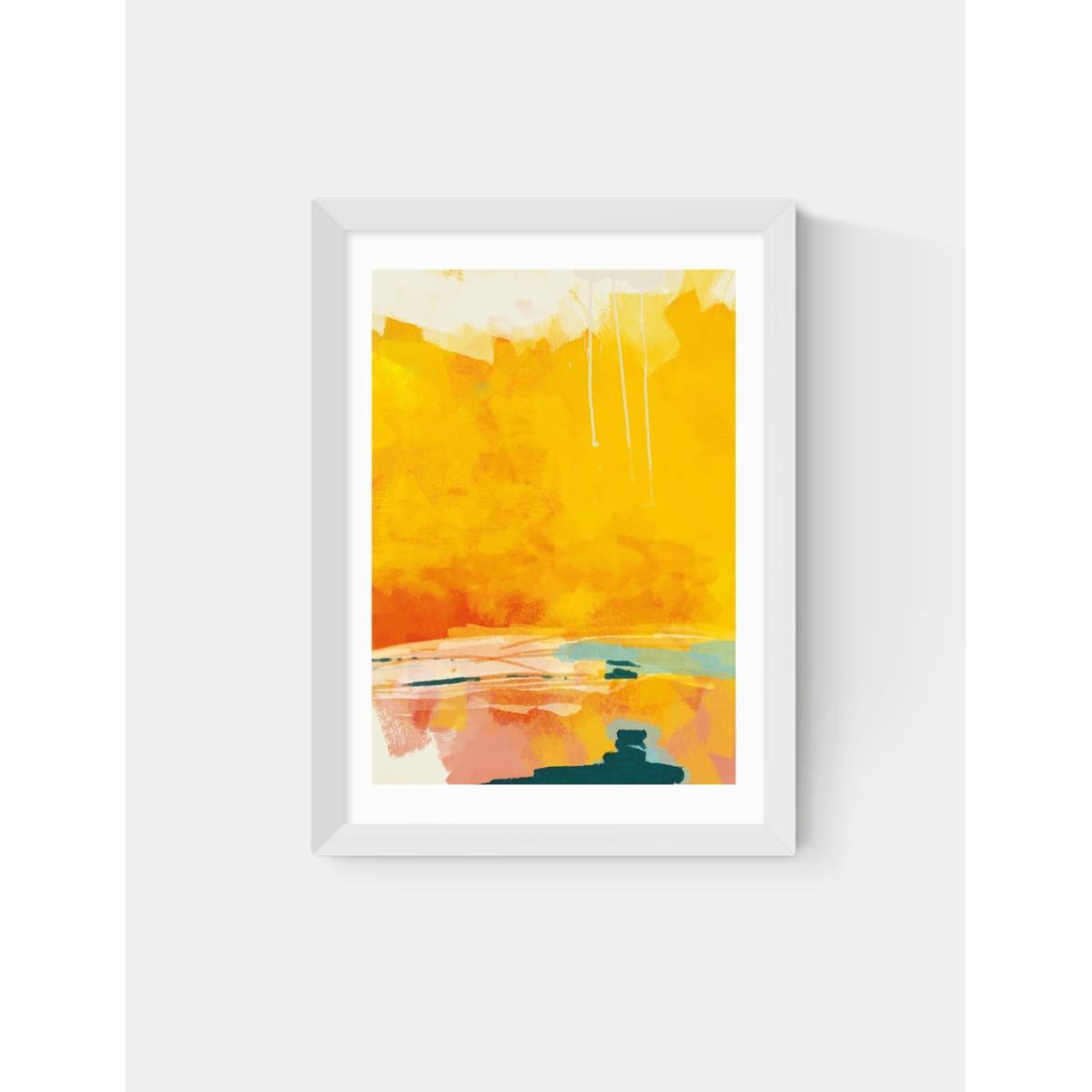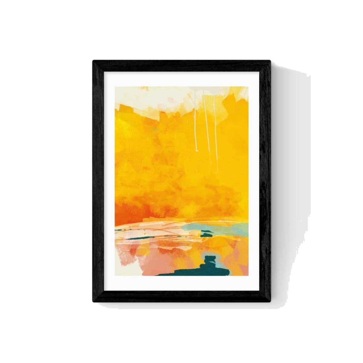 This piece works really well in modern or minimalist interiors thanks to its clean lines and bold colour palette. I love how the yellow adds warmth and energy, making it a focal point without overwhelming the room. It pairs nicely with neutral furnishings or monochrome schemes, but can also liven up a more subdued space. For practical styling, consider grouping it with other black and white artwork for a gallery wall effect, or place it above a neutral sofa or sideboard to create a striking visual anchor. The A2 size is versatile enough to be a feature on its own or to complement a collection of smaller prints.