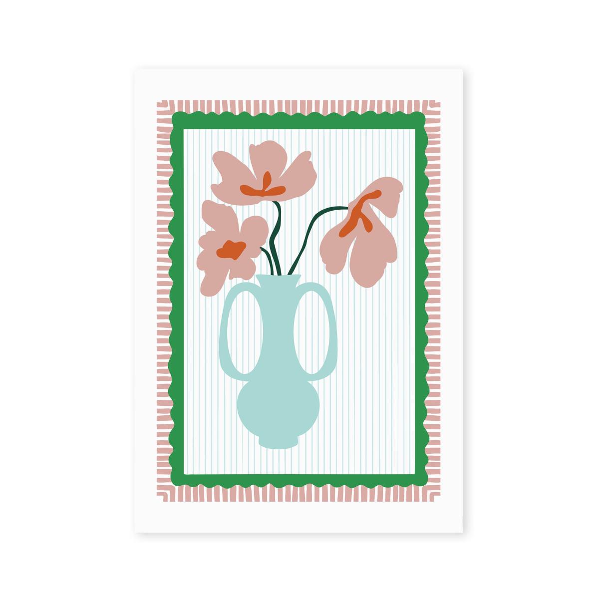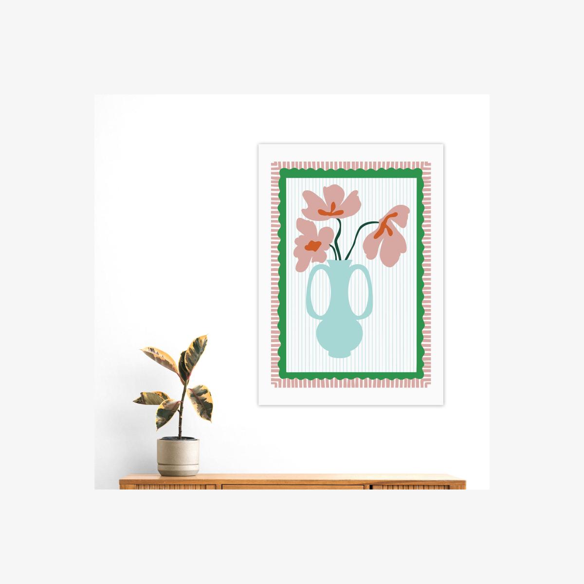 * Floral blooms in vase * Striped background with scalloped edge * Printed on 210gsm acid-free archival paper * Available in A1, A2, A3 & A4 size * Frame options: black, white and oak wood effect * Available in unframed option Add bright and cheerful blooms to your space with this fade-resistant Radiance print, showcasing a floral arrangement in a handled vase on a striped background. The scalloped and striped edge adds contrast and is perfect for an eye-catching centrepiece on a gallery wall, or as a standalone decor piece. Available in multiple sizes and frame options, this print can also come without a frame, so that you can display it your way.