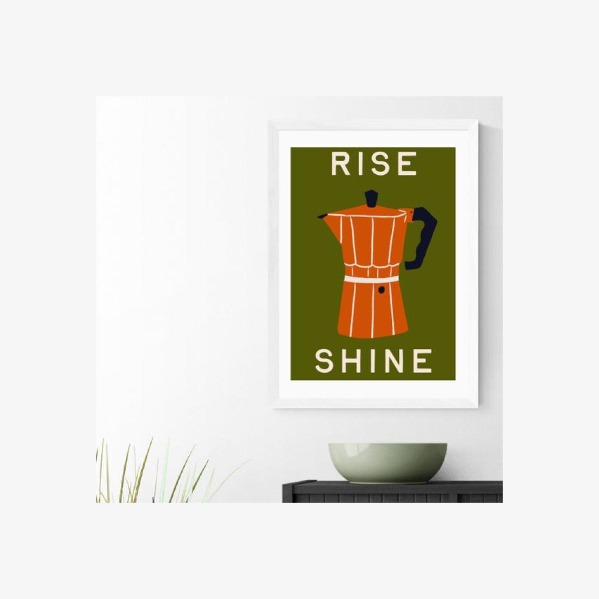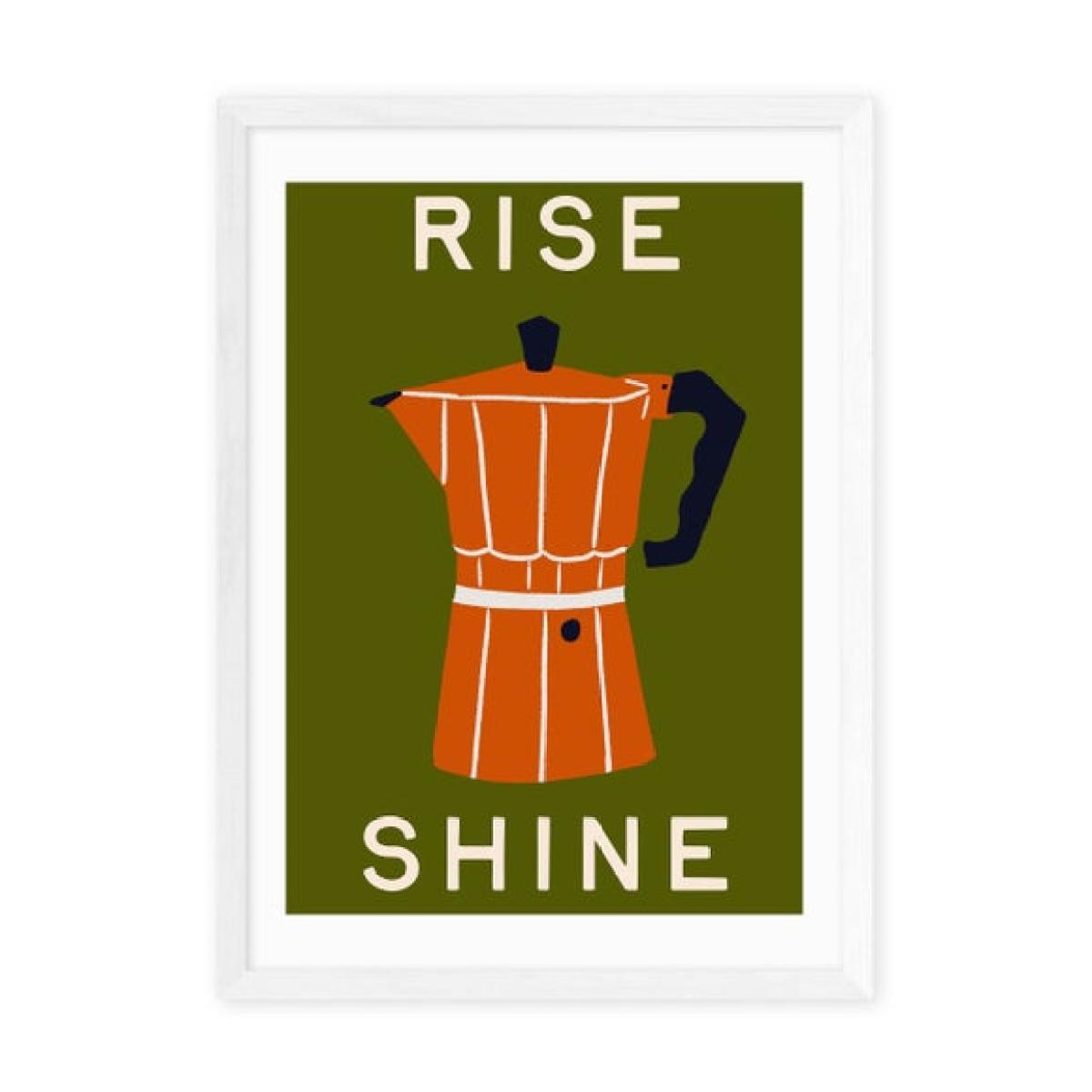 * 'Rise and Shine' print * Coffee pot design * Printed on 210gsm acid-free archival paper * Available in A1, A2, A3 & A4 sizes * Frame options: black, white and oak wood effect * Available in an unframed option Coffee lovers rejoice - this print is ready to greet you in the morning with your first-thing caffeine fix - 'Rise and Shine' typography blends perfectly with the illustrated coffee pot. Printed using a Giclee process for fade-resistant colour, this print is available in multiple frame options and sizes to suit your walls.