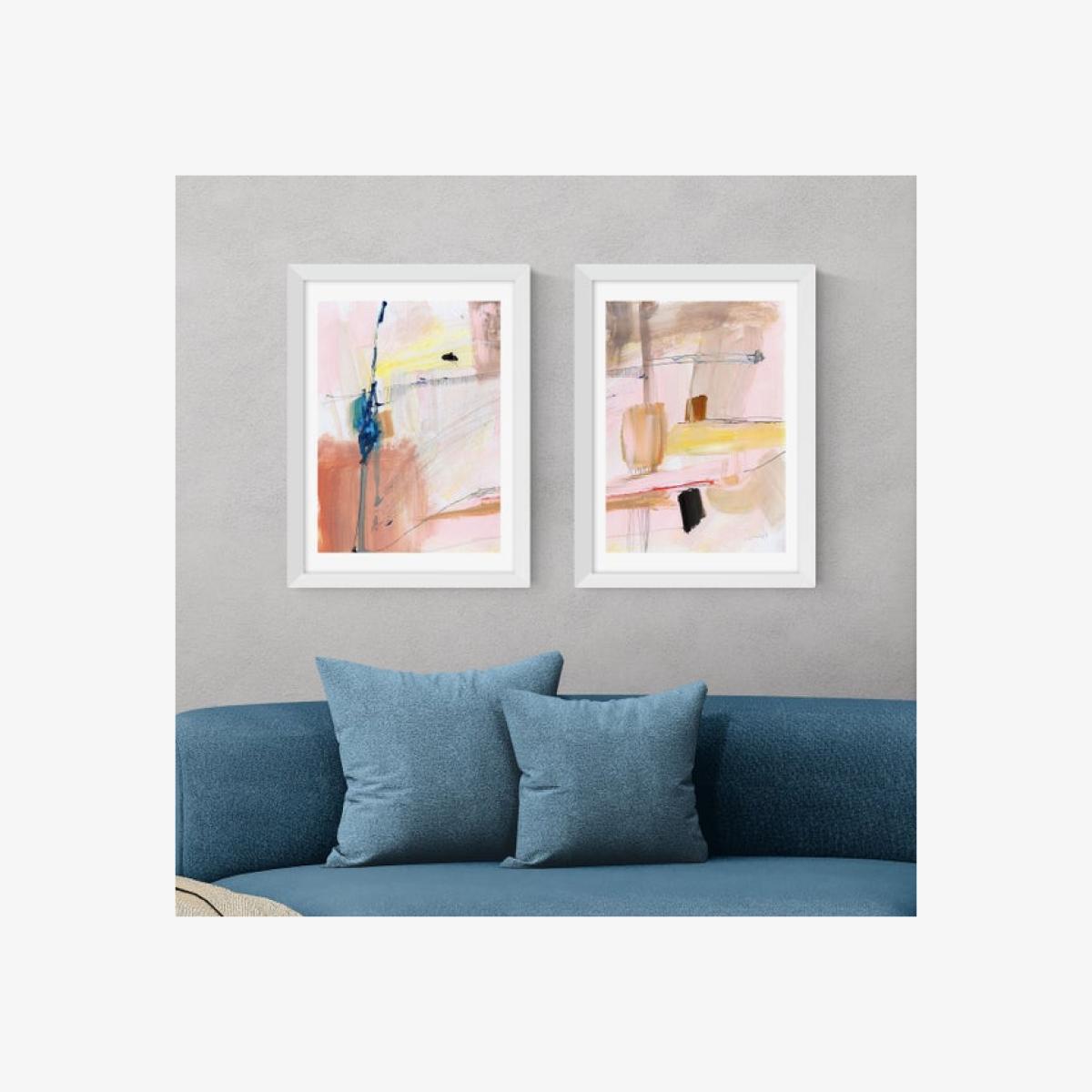 * Set of 2 * Artwork by Dan Hobday * Abstract style * Available in A1, A2, A3 & A4 sizes * Giclee printing process lasting up to 70 years from fading * Printed on 210gsm acid-free archival paper * Frames available: black, white and oak effect * Also available unframed Minimal, modern, and effortlessly calming — this set of two abstract prints by Dan Hobday is perfect for creating a serene, contemporary space. With soft shapes and muted tones, they bring a sense of balance and flow to any room. East End Prints are proudly printed and made in the UK, with a royalty paid to the artist for every print sold.