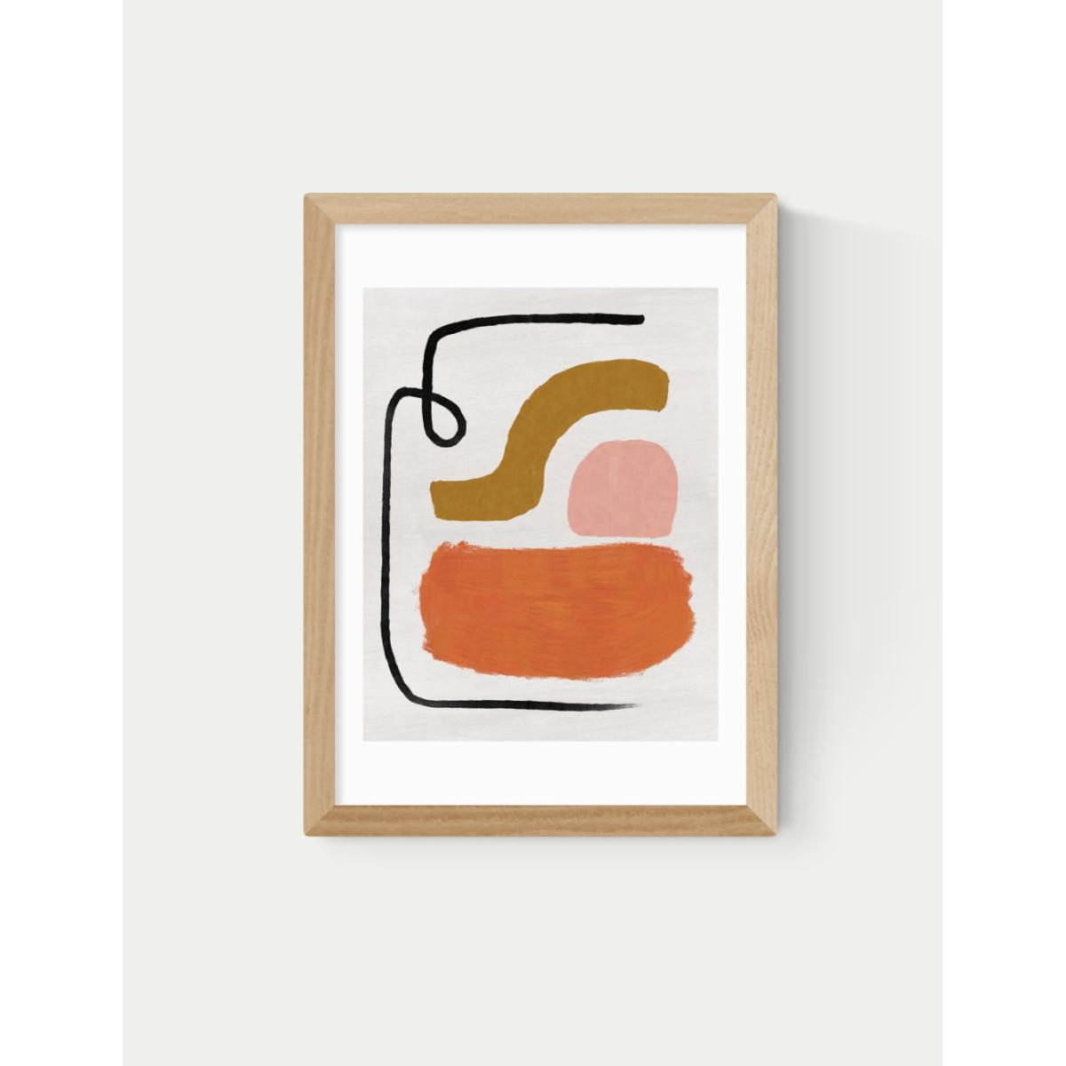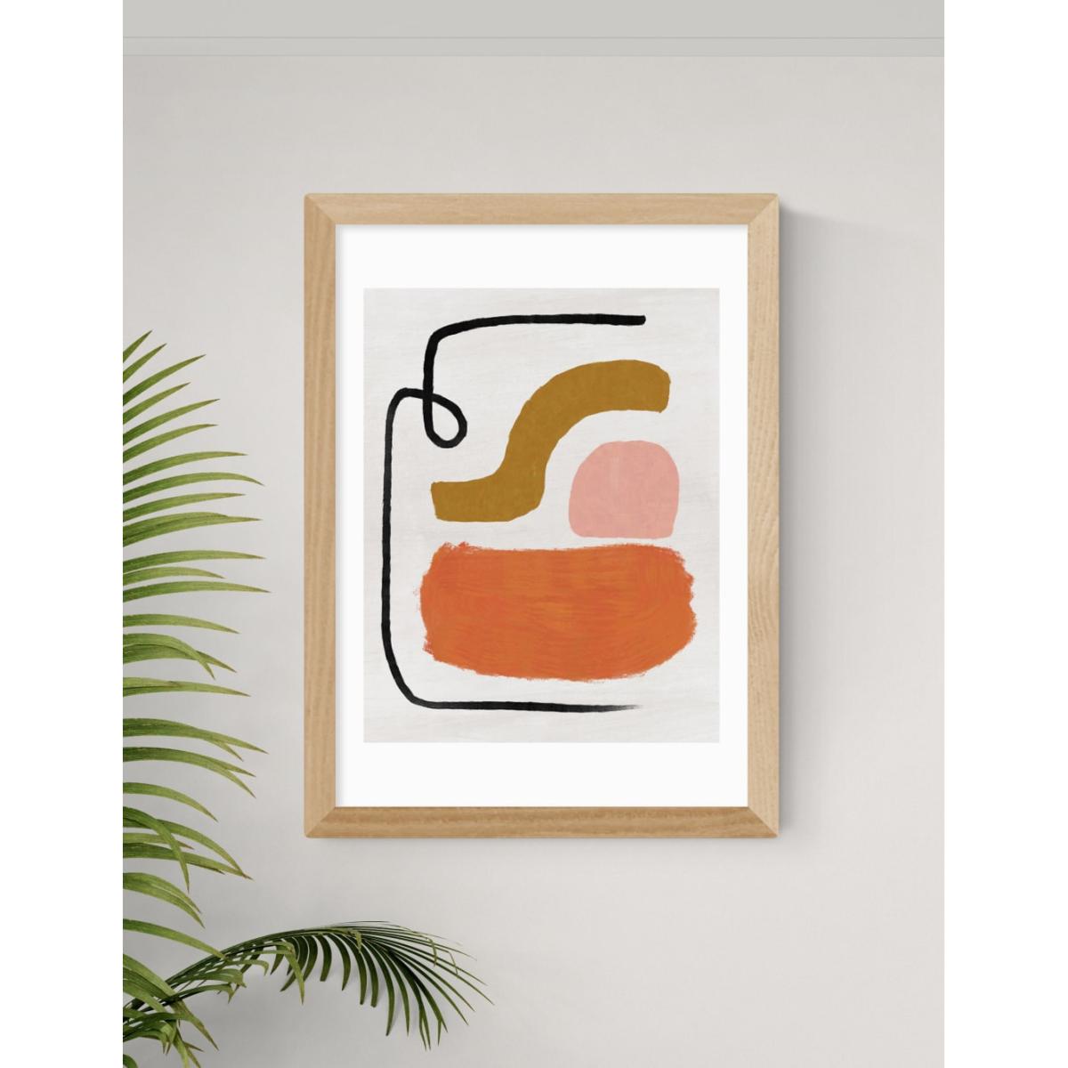 I love the simplicity of this print, making it a versatile piece that can adapt to various interiors. Its neutral palette of black, white, and natural tones makes it ideal for modern, minimalist spaces, but it can also add subtle visual interest to more eclectic or Scandinavian styles. To style it effectively, consider pairing it with furniture and accessories that have natural textures or warm wood finishes to enhance the organic feel. For a polished look, hang it above a neutral sofa or bed, or cluster it with other artwork in different sizes for a gallery wall effect. Its abstract design also provides a contemporary touch without overwhelming the space, making it a practical choice for both living rooms and bedrooms.