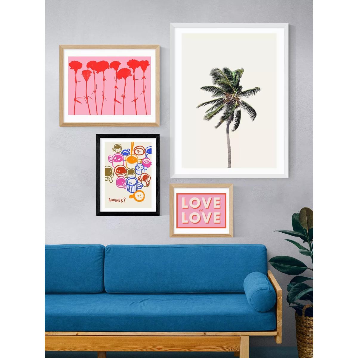 Beverage homage by SimplyExtra. Jordanary. The giclée art printing process and 210gsm acid-free archival paper create an exhibition-quality art print with long-lasting colours that more closely resemble the artist's materials and tones. A digital form of the original work is stored and then printed using a commercial printer and pigment-based inks. Made in the UK, each print is presented with an acrylic glaze that's optically the same as glass yet lighter in weight making it easier and safer to hang. Ready to hang on your wall, it's framed in obeche wood in a choice of finishes. Have you thought about wall hooks and fittings? EAST END PRINTS picture frames are usually one of two frame widths: medium frame (2.2cm) and wide frame (3.5cm). The frame width varies across the range. The medium frame measures 2.2cm across and comes in the following four sizes: 33.4 x 28.4cm 43.4 x 33.4cm 53.4 x 43.4cm 83.4 x 63.4cm The wide frame measures 3.5cm across and comes in the following four sizes: 36 x 31cm 46 x 36cm 56 x 46cm 86 x 66cm