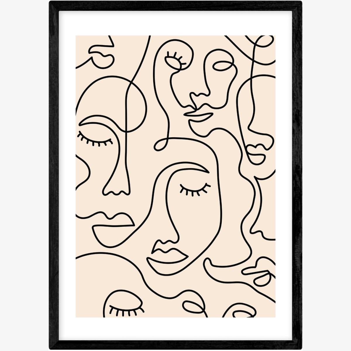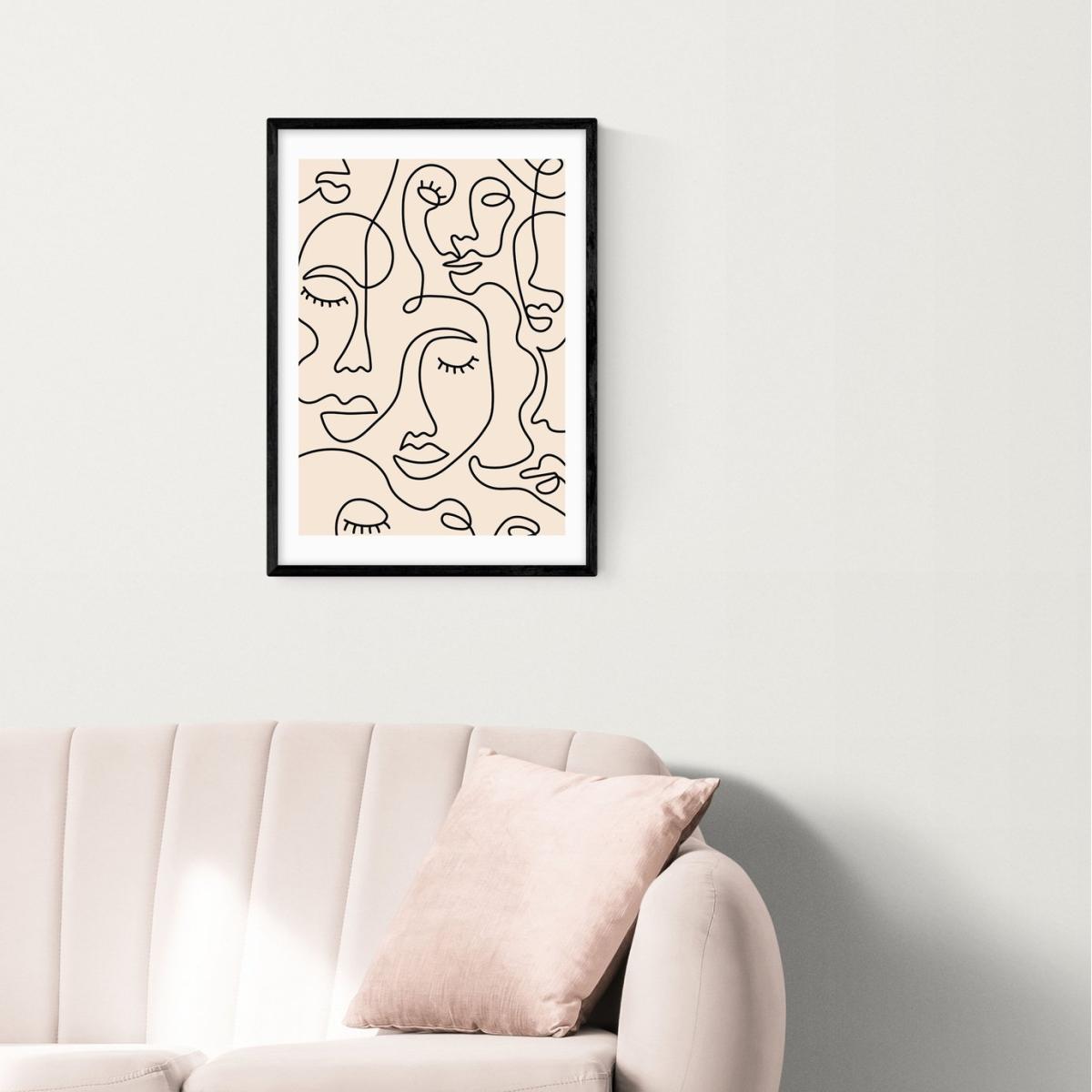I love this single line faces print for its minimal yet bold aesthetic - it makes a striking statement without overwhelming a space. It works particularly well in contemporary or Scandinavian-inspired interiors, adding a touch of artistic flair with its clean lines. For styling, consider placing it above a neutral sofa or bed to anchor the space, or pairing it with other monochrome pieces for a cohesive look. It also lends itself to being a versatile statement piece; framing it simply allows the artwork to stay modern, but it could also be layered with art prints or photographs for a more eclectic, curated feel. Practical tip: use consistent matting and framing to let its graphic simplicity shine.