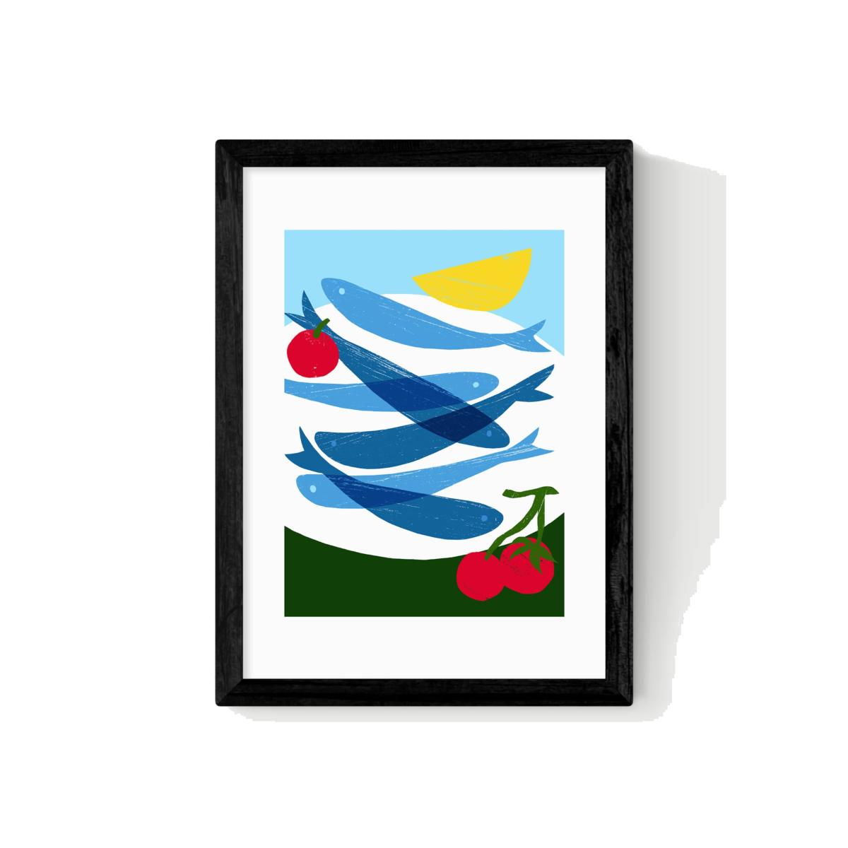 Add a culinary touch to your interior with this wall art by Anek from East End Prints. It features six sardines on a plate in colourful bold hues for a modern feel, and is presented in a sleek rectangular frame that hangs in portrait orientation.