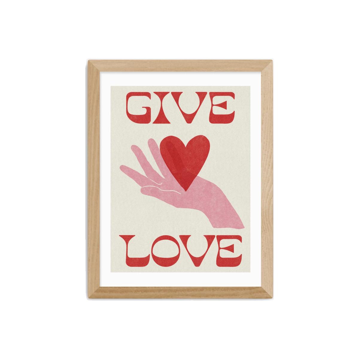Add some love to your walls with this retro-inspired typography print by Tartagain. This fine art-quality print on 210gsm acid-free archival paper is framed in obeche wood in a choice of finishes. The acrylic glaze is light in weight and optically the same as glass. Made in the UK, it's ready to hang on your wall. Have you thought about wall hooks and fittings?EAST END PRINTS picture frames are usually one of two frame widths: medium frame (2.2cm) and wide frame (3.5cm). The frame width varies across the range. The medium frame measures 2.2cm across and comes in the following four sizes:33.4 x 28.4cm 43.4 x 33.4cm 53.4 x 43.4cm 83.4 x 63.4cm The wide frame measures 3.5cm across and comes in the following four sizes: 36 x 31cm 46 x 36cm 56 x 46cm 86 x 66cm