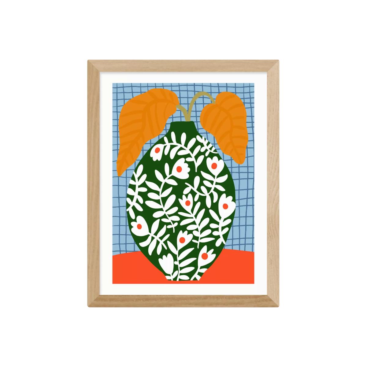 Add a dash of colour to your walls with this richly toned green plant pot print by artist Teresa Rego. The giclée art printing process and 210gsm acid-free archival paper create an exhibition-quality art print with long-lasting colours that more closely resemble the artist's materials and tones. A digital form of the original work is stored and then printed using a commercial printer and pigment-based inks. The print is presented with an acrylic glaze that's optically the same as glass yet lighter in weight making it easier and safer to hang. Ready to hang on your wall, it's framed in obeche wood in a choice of finishes. Have you thought about wall hooks and fittings?EAST END PRINTS picture frames are usually one of two frame widths: medium frame (2.2cm) and wide frame (3.5cm). The frame width varies across the range. The medium frame measures 2.2cm across and comes in the following four sizes:33.4 x 28.4cm 43.4 x 33.4cm 53.4 x 43.4cm 83.4 x 63.4cm The wide frame measures 3.5cm across and comes in the following four sizes: 36 x 31cm 46 x 36cm 56 x 46cm 86 x 66cm