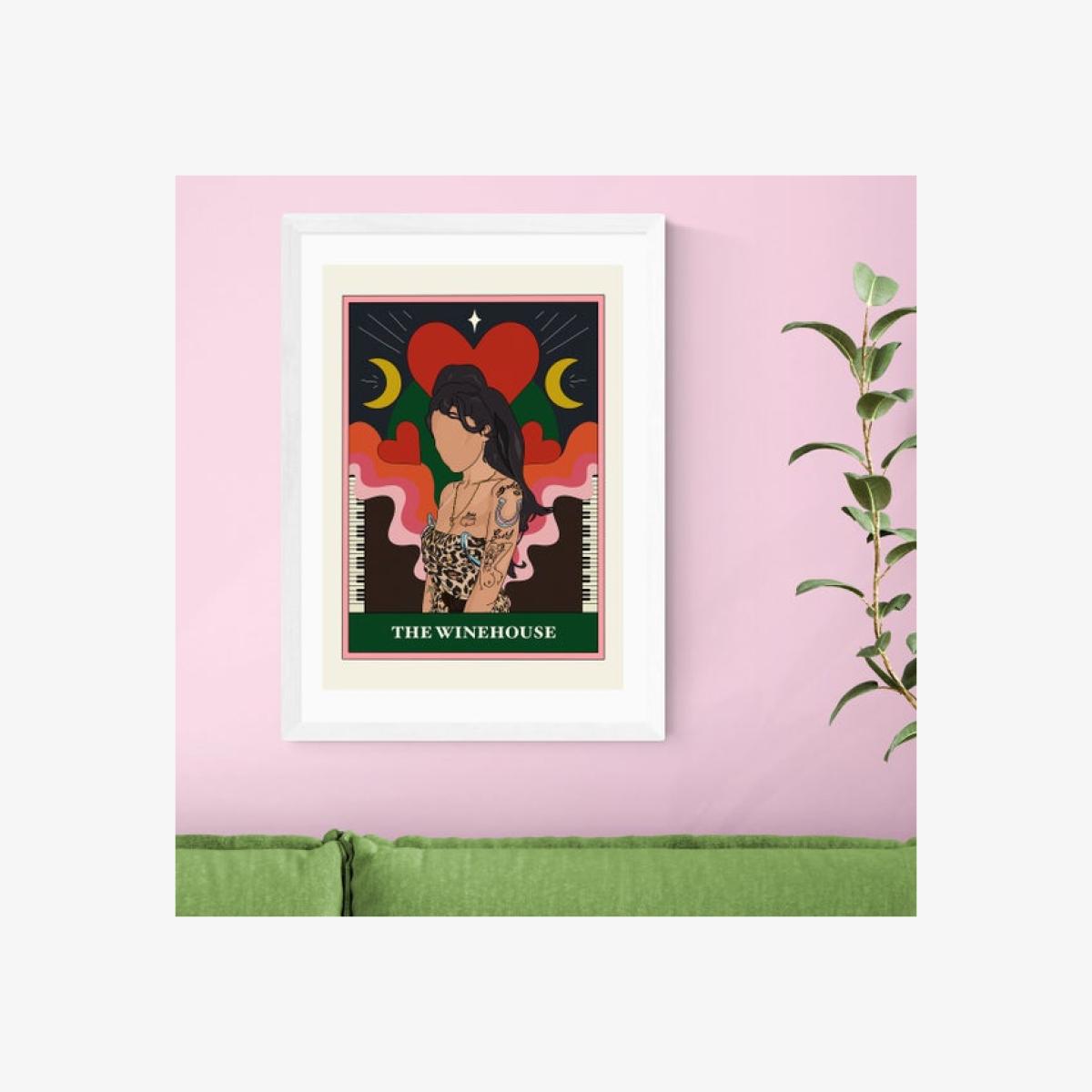 I really like the East End Prints Winehouse print for its bold, contemporary vibe and vibrant colours. It works particularly well in eclectic, modern or boho interiors where you want a statement piece that adds personality. This print can be styled above a sofa or sideboard, paired with other artwork or decorative objects for an effortless gallery wall. To keep it looking fresh, consider pairing it with greenery or textured cushions in complementary colours like, say, softer pinks or deep greens, which will help it stand out without overwhelming the space. Its vivid design makes it a great focal point and an instant conversation starter, especially in casual or creative living areas.
