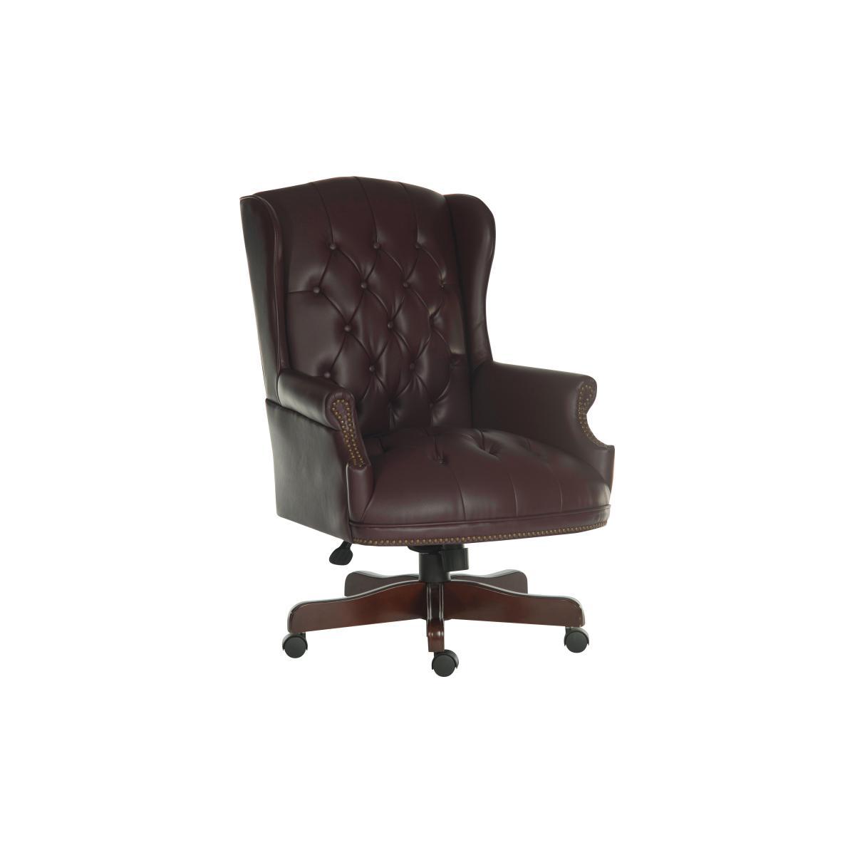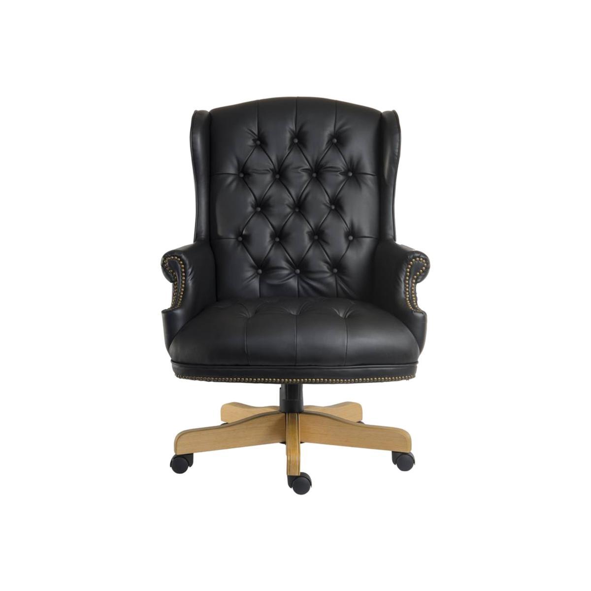 Beautifully crafted from wood and steel frames and with luxuriously padded upholstery, the East River range of executive-style office chairs most assuredly means business. Chairs are height adjustable, come with tilt-tension reclining function and are upholstered in durable faux and bonded leather. Choose from three different chair styles in black, white, red and cream. A must-have for any home office. You'll feel every inch the top executive when you sit at your desk in the East River Chairman chair. Beautifully upholstered in durable faux leather in a choice of colours, this great-value stylish office chair has a traditional buttoned back and seat, winged sides, and curved arms with antique-finish studded trim. Generously proportioned and superbly padded for comfort and support, this stunning desk chair has a large seat area. The seat height adjusts from 48 cm to 56 cm with a gas lift mechanism, and a tilting mechanism with tension control means it’s easy to find the perfect working position. Choose either a light or dark wood finish for the five-star base with castors. The East River Chairman chair is one of eight superb desk chairs in the East River collection.