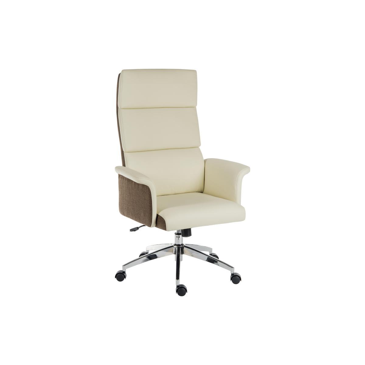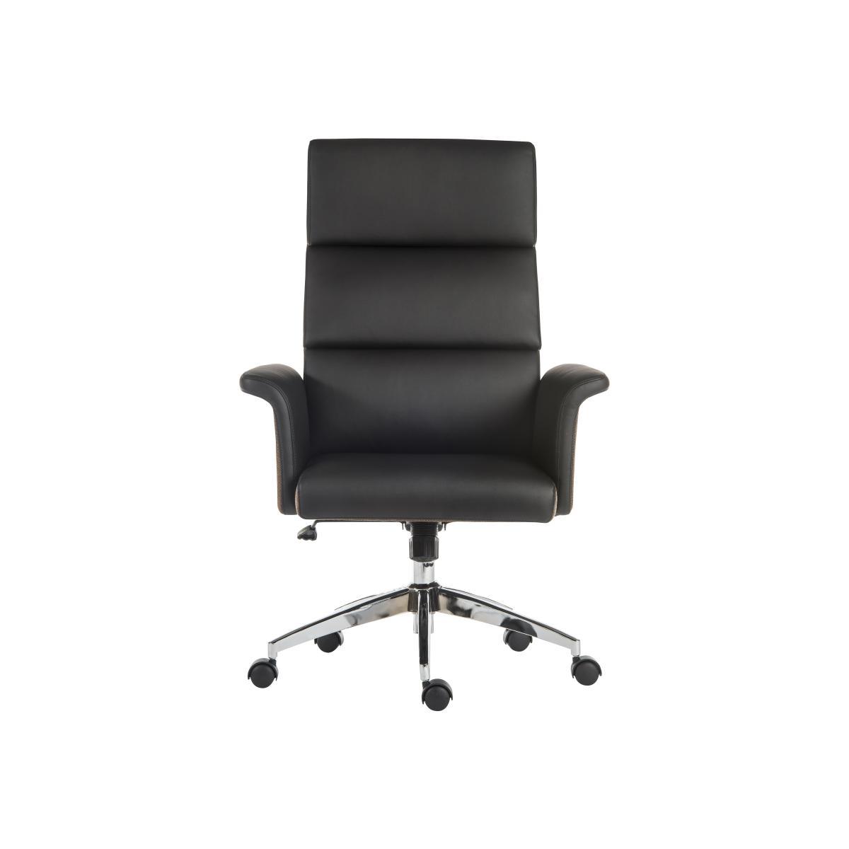 Beautifully crafted from wood and steel frames and with luxuriously padded upholstery, the East River range of executive-style office chairs most assuredly means business. Chairs are height adjustable, come with tilt-tension reclining function and are upholstered in durable faux and bonded leather. Choose from three different chair styles in black, white, red and cream. A must-have for any home office. In classic mid-century modern style, the affordably-priced East River Elegance high back chair brings contemporary sophistication to your home office. The high square back features linear stitching, a stylish touch which also ensures excellent lumbar support. Gently curved gull-wing arms are padded for comfort, and the chrome-effect metal base has castors for manoeuvrability. A gas lift mechanism means you can easily adjust the height between 47 cm and 53 cm, and a tilting mechanism with tension control allows you to recline in both style and comfort. It’s beautifully upholstered in soft yet hardwearing faux leather in a choice of two colours with a contrasting woven fabric for the side panels. The East River Elegance high back chair is part of the East River collection of executive desk chairs. If you prefer a lower back chair, be sure to view the East River Elegance medium back chair.