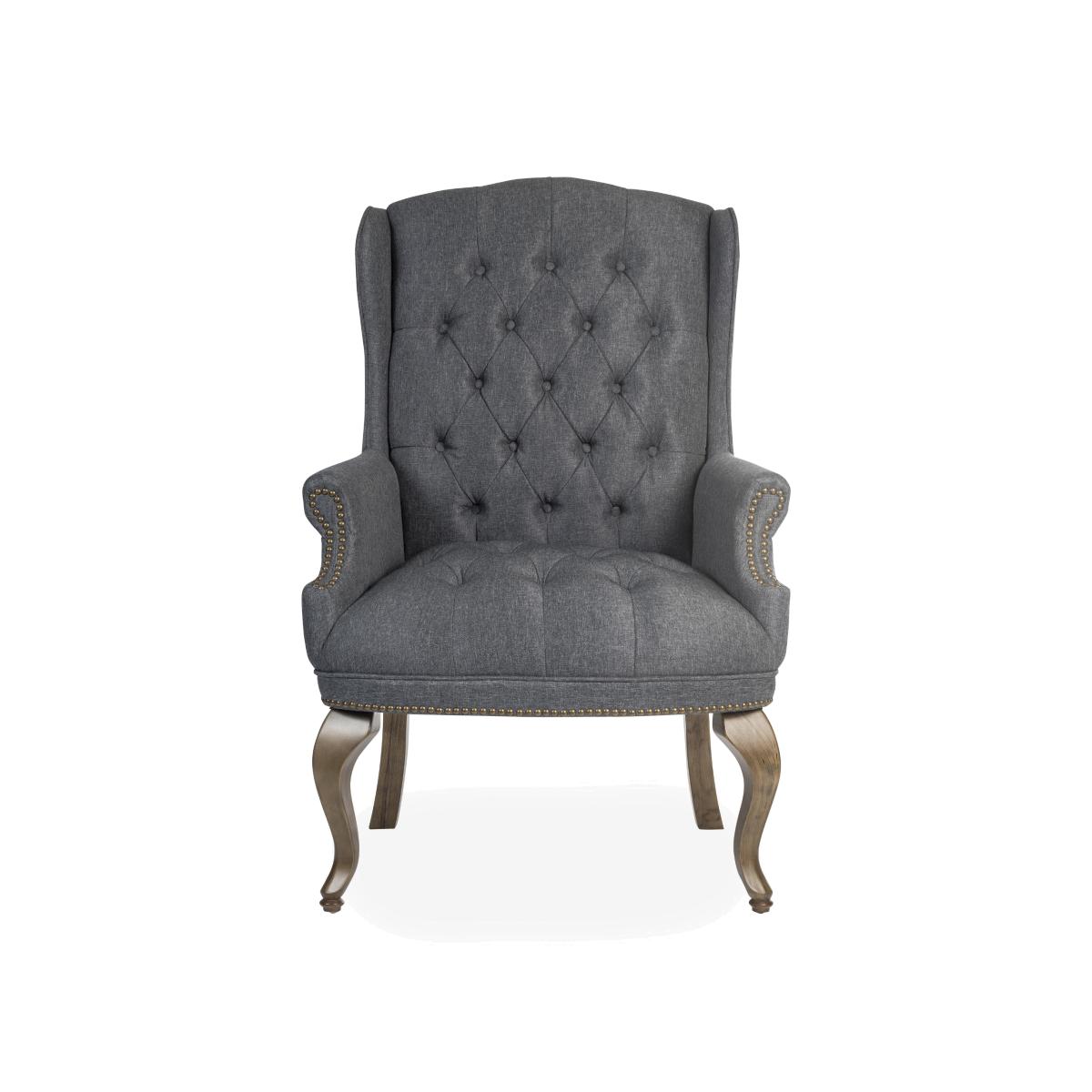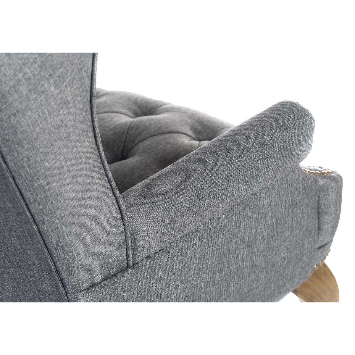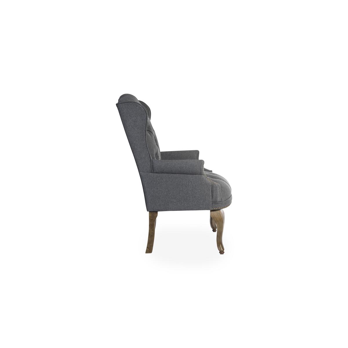 With its sprung seat, high back and winged sides, this armchair is all about comfort. It’s designed to be a visitor’s chair in a home office, but it’s sure to add traditional elegance to any room. Why you'll love it Well-crafted traditional armchair is ideal for a home office. Soft grey fabric upholstery with luxurious buttoning. Winged sides and curved arms for support. Hand-finished with an antique-effect brass nail head trim. Elegant legs have a fruitwood-effect finish. Extremely comfortable – the seat has hand-tied coil springs. Designed to be used for 8 hours a day. This home office visitor’s chair is part of the East River range. What you need to know This chair requires self-assembly. Suitable for desks at least 66 cm high. Clean with a damp cloth. Avoid abrasive cleaning products. Position out of direct sunlight. Item code: ERIVOFCHGRY-001