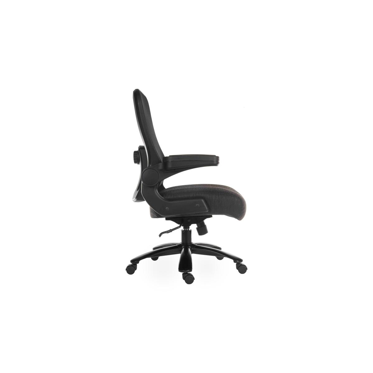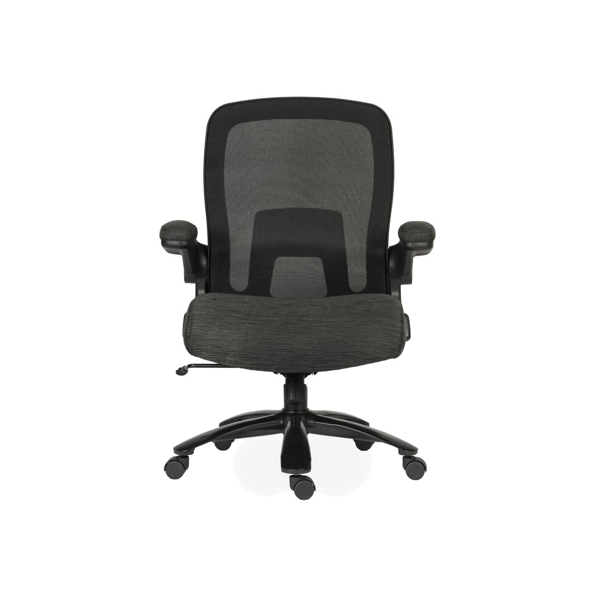Cool and modern in style, this home office desk chair is a heavy-duty workhorse with a whole range of ergonomic comfort features that’ll make the work day fly by. Why you'll love it Modern office desk chair helps you power through the working day. Reclines and has a tilt function with tension control. Gas-powered lift mechanism makes it easy to raise and lower the seat. Swivel base with castors is reinforced for extra stability. Ultra-deep cushioned fabric seat. Mesh backrest with adjustable-depth lumbar support pad. Soft-touch fold-up armrests. So sturdy and supportive, it can be used for 24 hours. This home office chair is part of the East River range. What you need to know This chair requires self-assembly. Weight-bearing up to 222 kg (490 lbs). Suitable for desks at least 66 cm high. Clean with a damp cloth. Avoid abrasive cleaning products. Position out of direct sunlight. Item code:ERIVOFCHHER-001