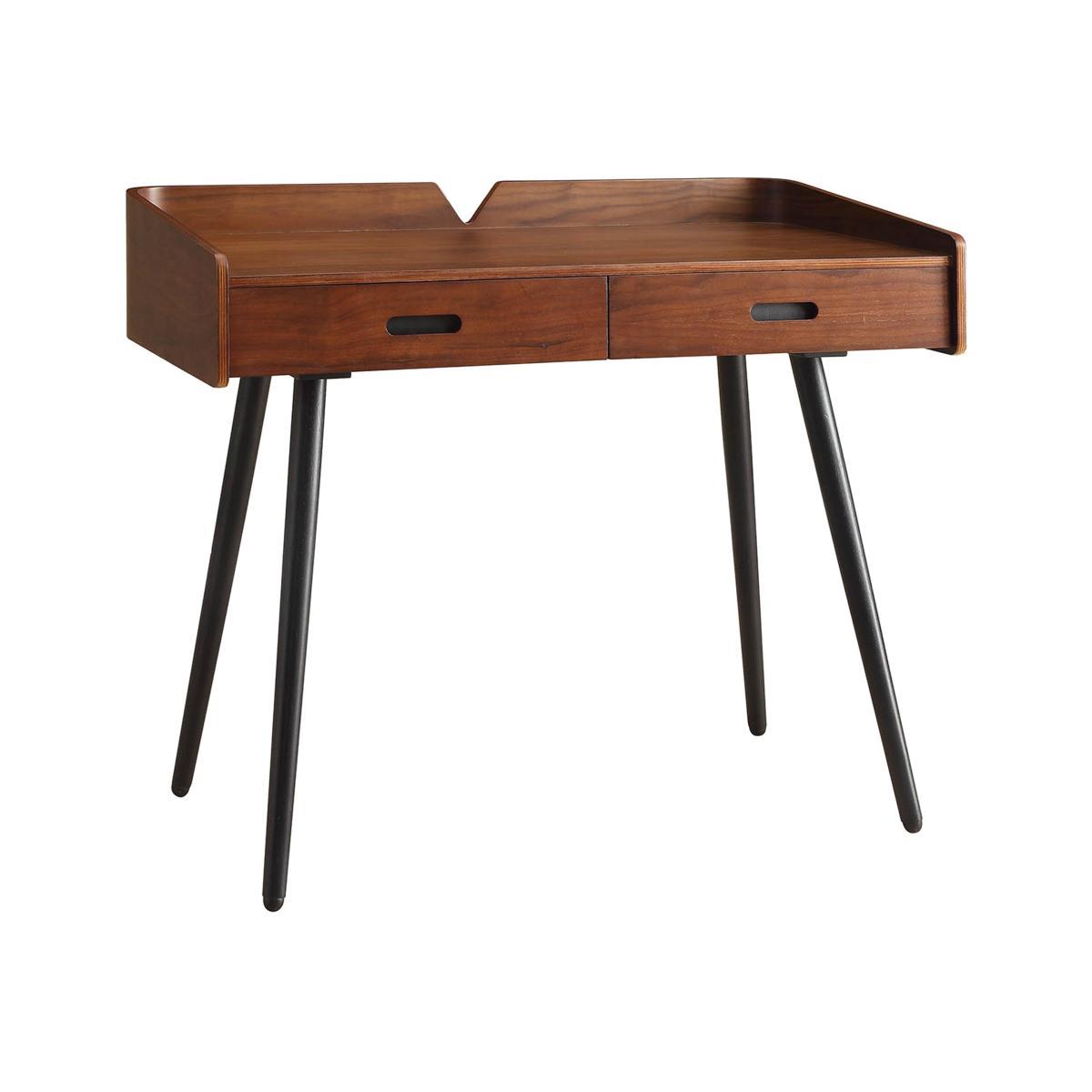 Beautifully curved and with a smooth walnut veneer finish, each piece in the East Street collection brings understated elegance to any home office. Choose from a range of desks in different sizes and designs, and pair your favourite with either the fixed chair or the swivel chair with stunning cut-out veneer back. Drawer units and a bookcase complete this collection of furniture that combines everyday functionality with creative contemporary design. Order by 3.00 pm for fast next working day delivery. Most pieces require easy self-assembly. A Furniture Village online exclusive. With its beautiful balance of gentle curves and linear edges, the East Street 2 drawer desk brings style and function in equal measure to your home office. Finished in a rich and warm real walnut wood veneer and set on black angled legs, this compact desk has a uniquely curved wraparound edge that holds two useful drawers, perfect for stationery and even a laptop or tablet. The edge helps to keep all desk-top items tidily enclosed, and also features a notch for keeping computer leads securely in place. The drawers have stylish elongated finger pulls. The East Street 2 drawer desk is part of the East Street collection which offers a choice of desk styles along with desk chairs and a bookcase. Available with fast, next working day delivery. Great value, great style.
