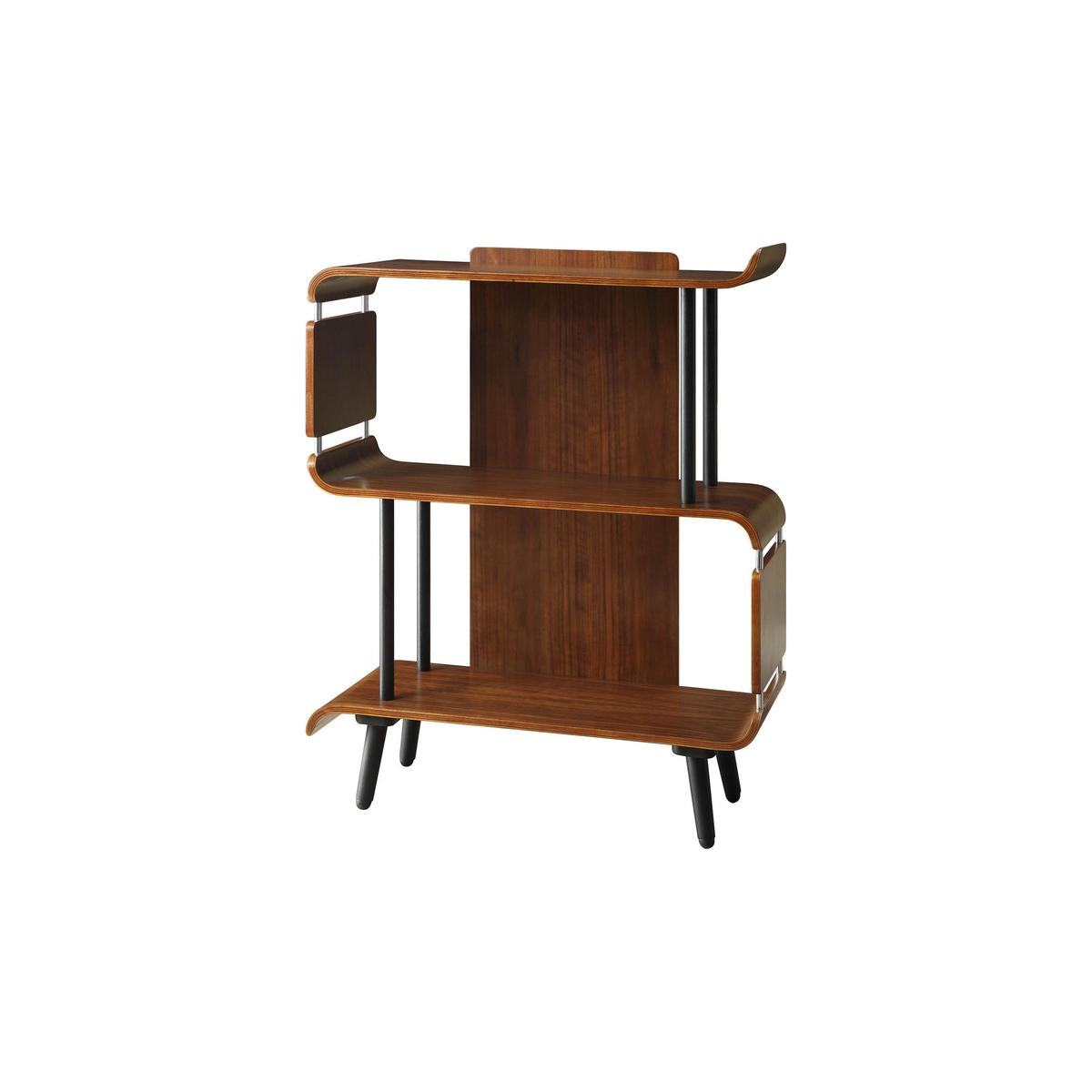 The great-value and very stylish East Street low bookcase provides useful display space, and is quite the unique piece of design itself. With its warm walnut veneer finish, this pieces features an S-shaped bend of connected curved panels anchored by a smooth back panel. Books, decorative objects and keepsakes are keep in place by sturdy struts, and the whole piece is set on angled back legs. It’s a wonderfully creative piece of design, and proof that small indeed can be beautiful. The East Street low bookcase is part of the incredible value East Street collection of home office pieces – desks, chairs and storage furniture. This range is available with fast next working day delivery. WARNING!. Furniture can tip over unexpectedly and cause injury. This item shall be fixed to a wall using the anti-tip kit provided with the furniture. Be sure to use the correct wall fixings suitable for the walls in your home.