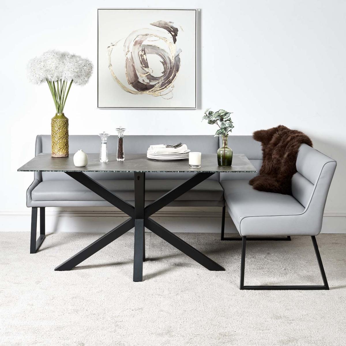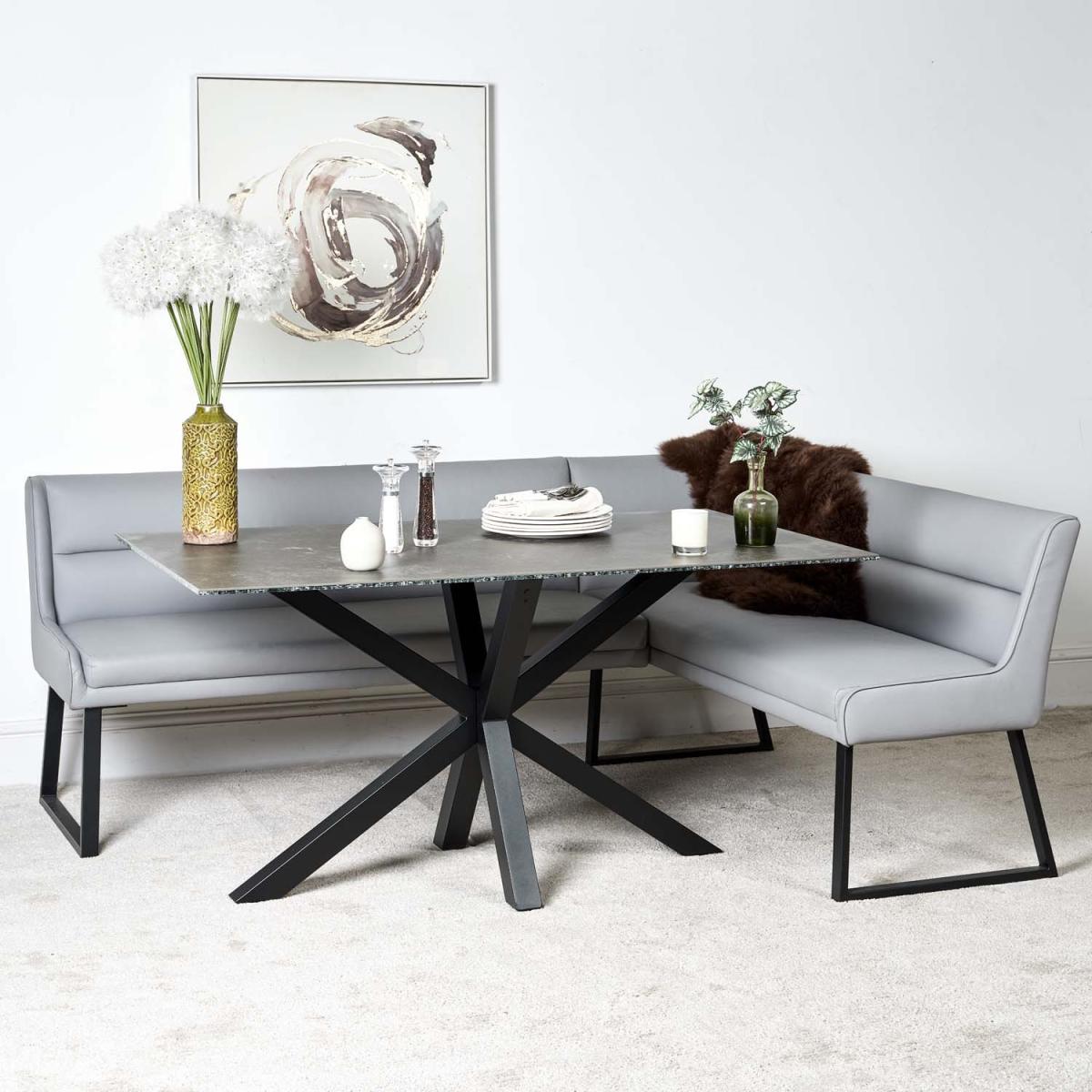 Eastcote Black 150cm Dining Table and Paulo Corner Bench LHF - Grey