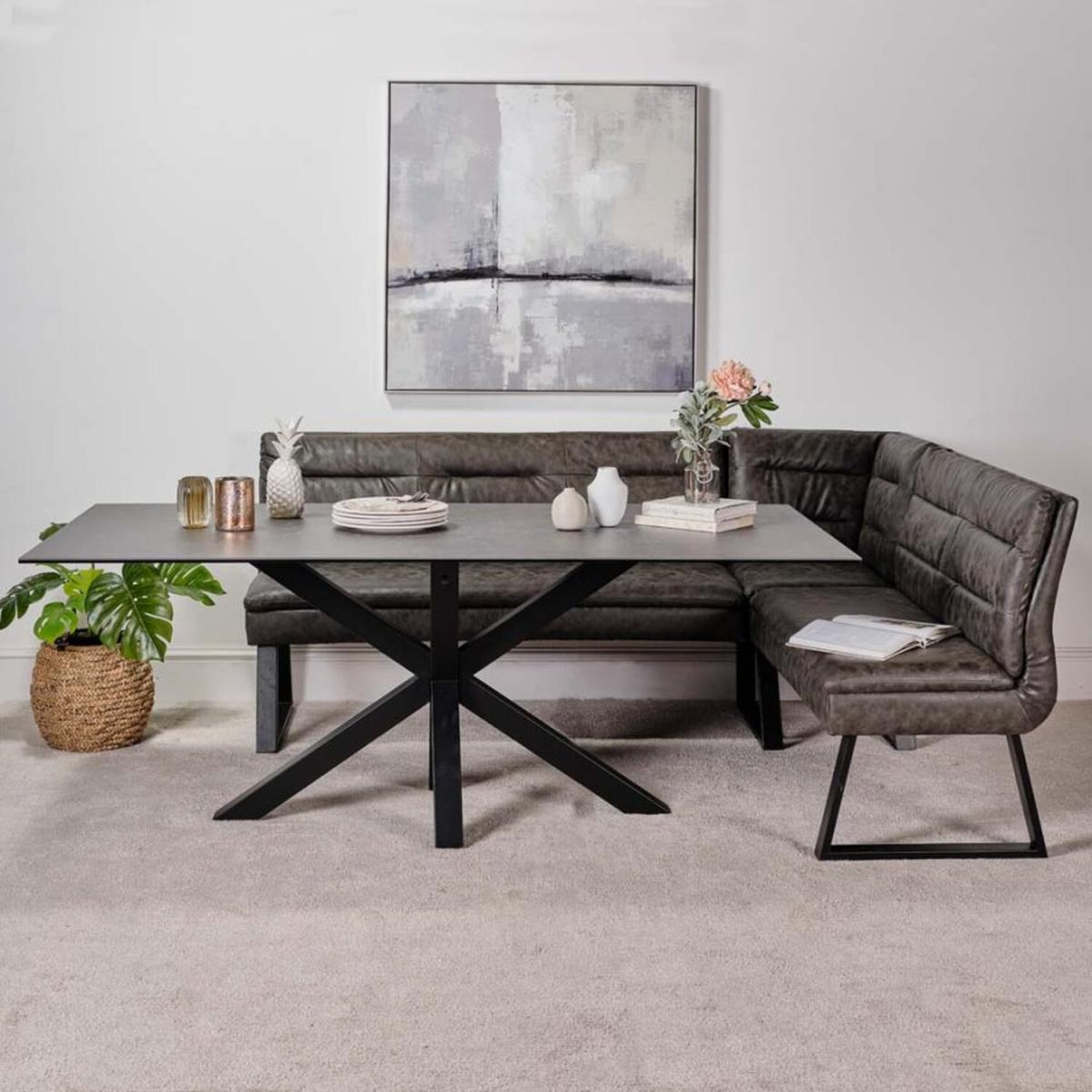 This amazing Bundle includes the 200cm Eastcote Dining Table and Industrial Corner Bench. The Dining table has a hard-wearing Ceramic top which is both scratch and stain resistant. Supported by Black coated metal legs in a star formation. It is Complimented beautifully by the Industrial Corner Bench in Grey Leather effect, the perfect setting for socialising and communal dining.