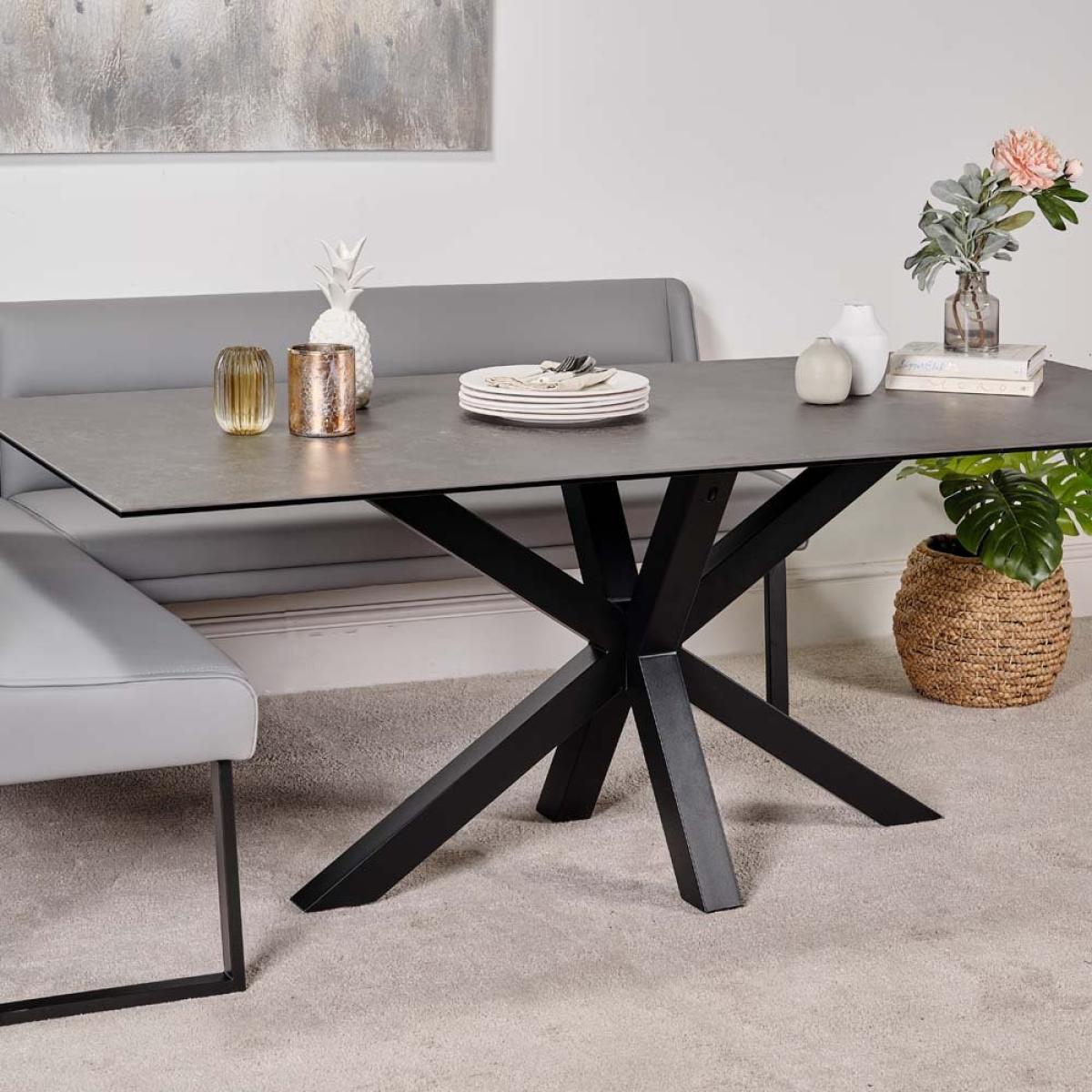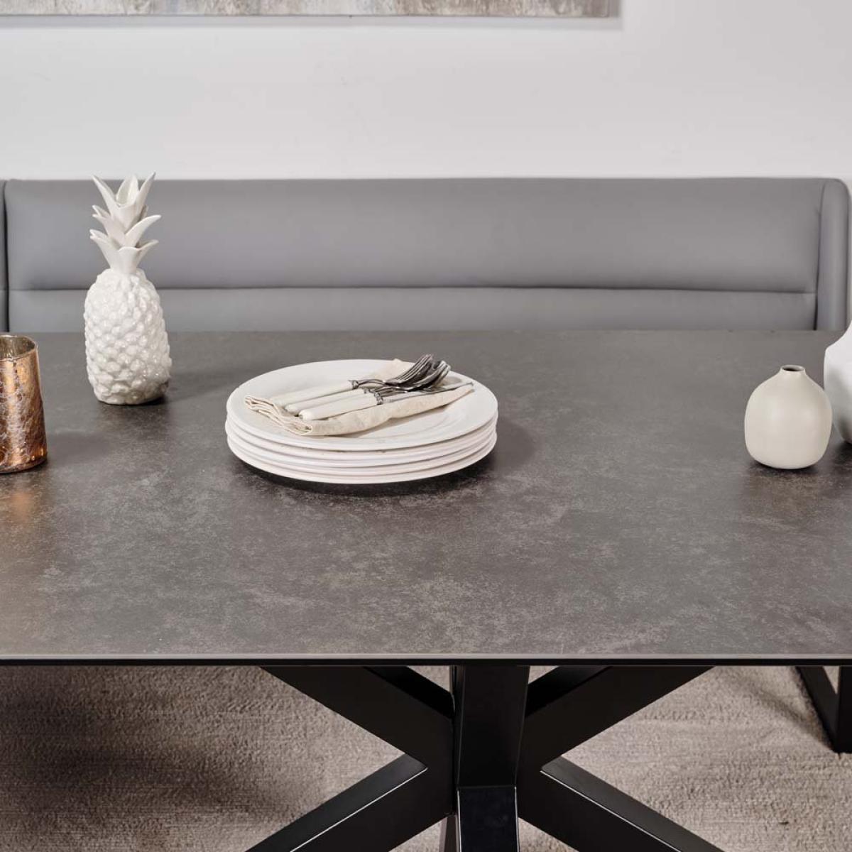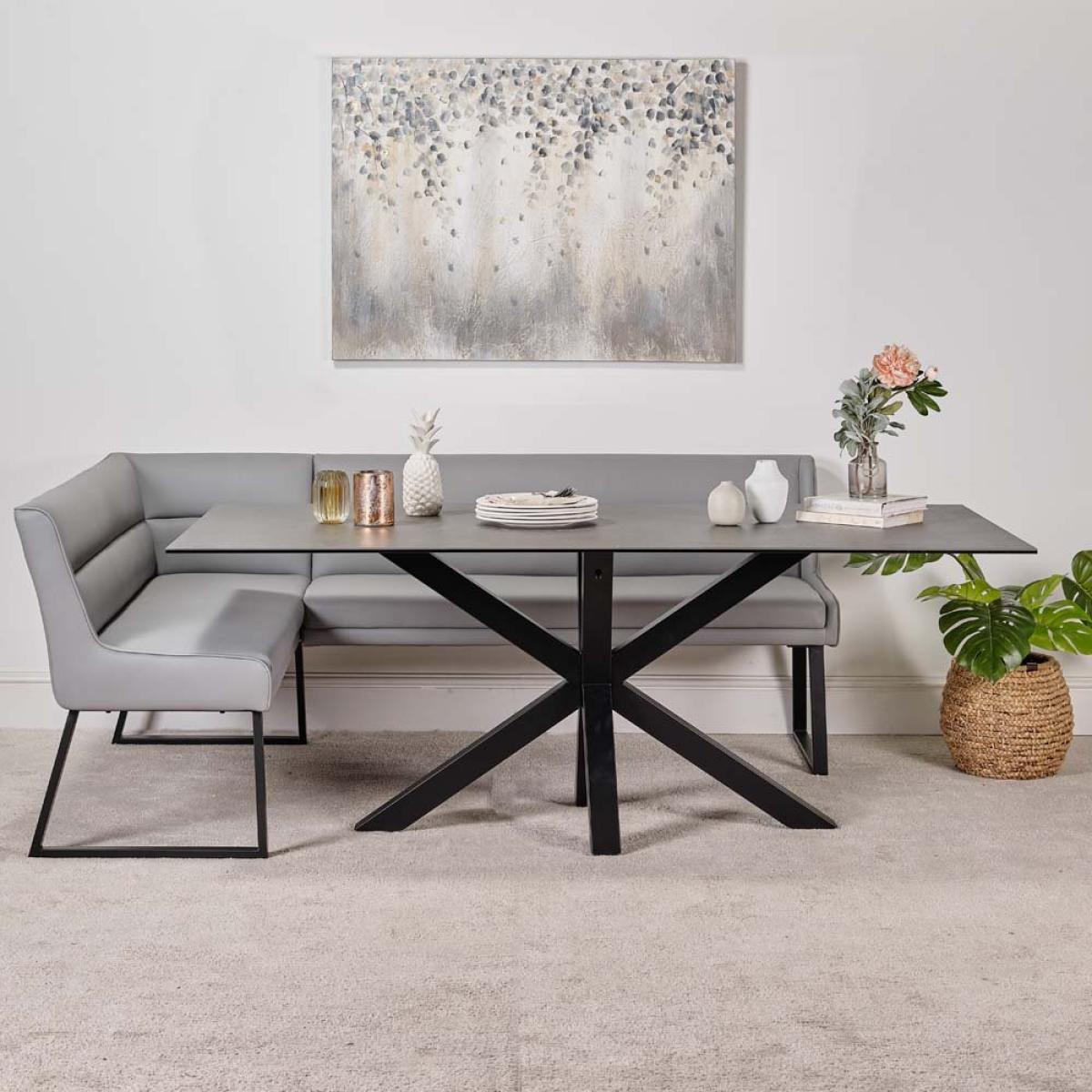 Eastcote Black Dining Table 200cm and Paulo Right Hand Facing Bench - Grey