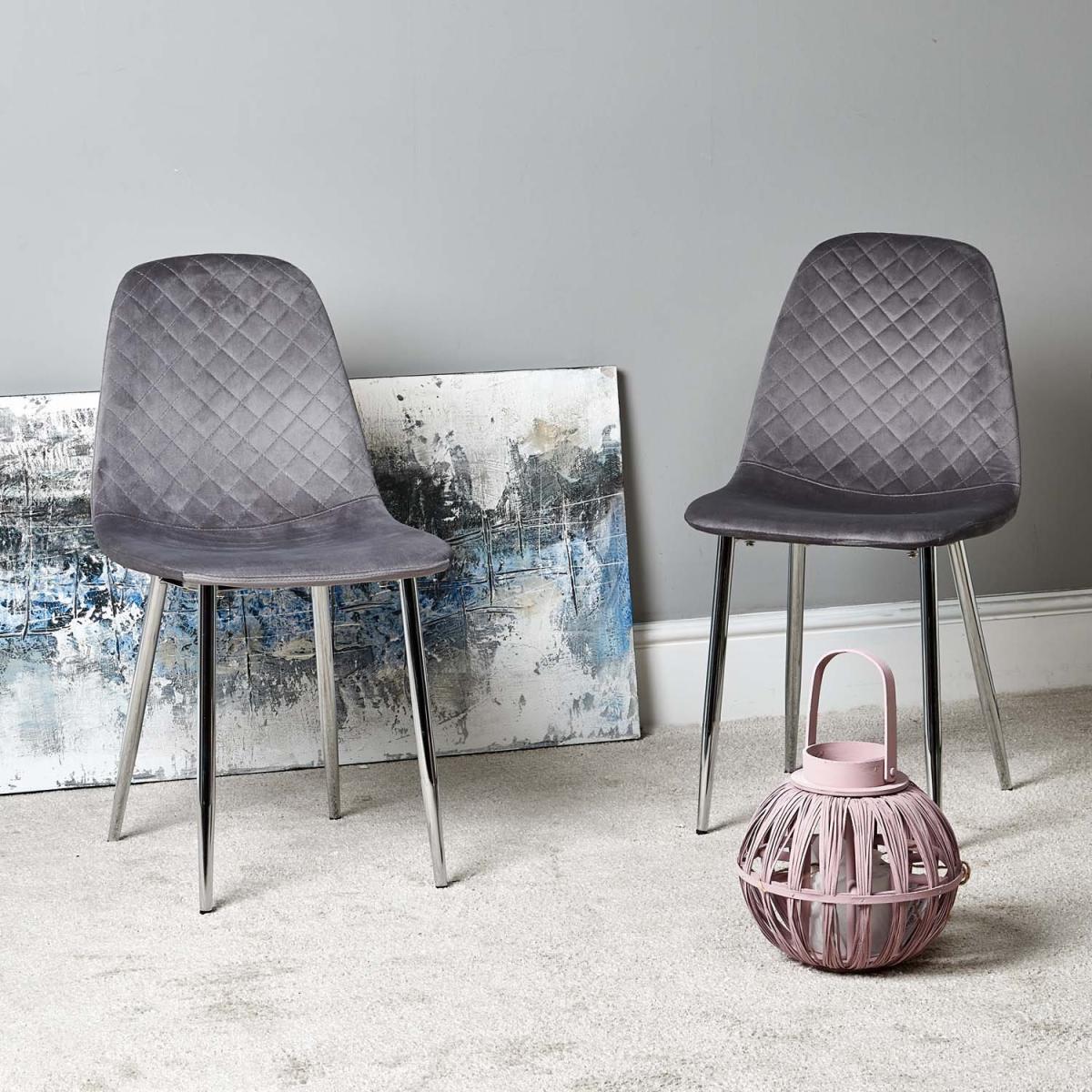 Eastcote White 150cm Dining Table and Archie Chrome Leg Dining Chairs PinkGrey