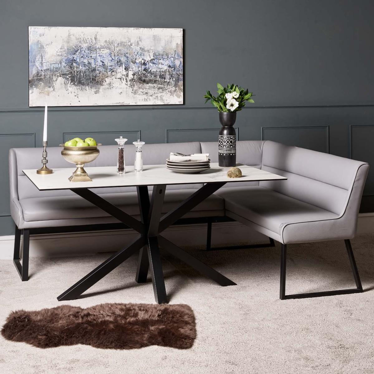 Eastcote White 150cm Dining Table and Paulo Corner Bench LHF - Grey