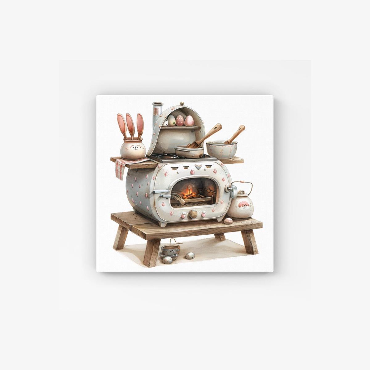 I love this Easter Egg Oven so much because it combines playful charm with a vintage-inspired aesthetic, making it a versatile piece for various interiors. It works particularly well in eclectic, farmhouse, or Scandinavian spaces where a touch of whimsy adds warmth. When styling this piece, consider pairing it with neutral or pastel colour schemes to let the artwork stand out, or incorporate it into a collections wall of quirky kitchen-inspired artwork. Practical tips include placing it in a cosy nook or above a sideboard, making it a focal point that sparks conversation - perfect for bringing personality to your culinary or dining space.