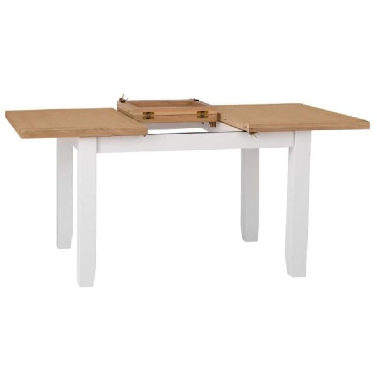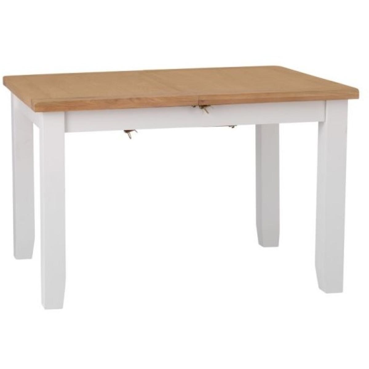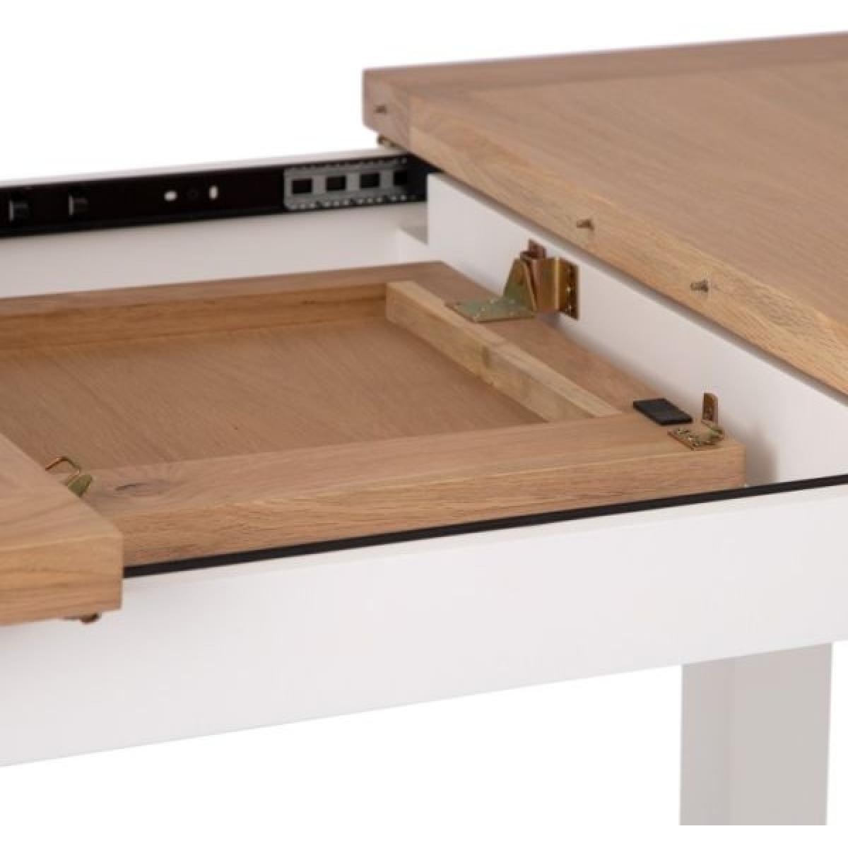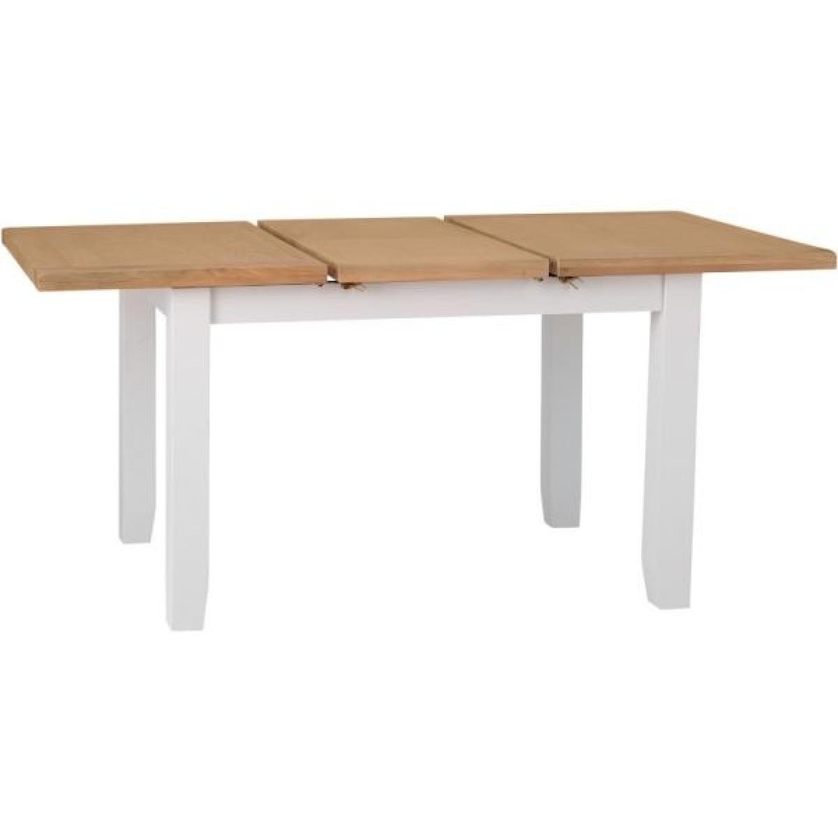 With washed oak tops and a beautifully painted finish and chrome elements, this dining collection seamlessly blends rustic warmth with contemporary design, adding a classic but stylish feel to any dining space. The Easton 1.2m Butterfly Extending Dining Table in White.features butterfly mechanism and aluminium ball bearing runner for smooth extending action. This range is also available in Grey. Features: Assembly Required Butterfly Mechanism Aluminium ball bearing runner for smooth extending action Clips to lock in extended or standard position Quality Oak Top for Durability Modern Style Country Design Made From Solid Oak, Pine & Real Veneer Dimensions: Height: 78cm Width: 120cm / 165cm Depth: 85cm All screens vary in colour reproduction and whilst every effort has been made to display the colour as accurately as possible it is for guidance only.