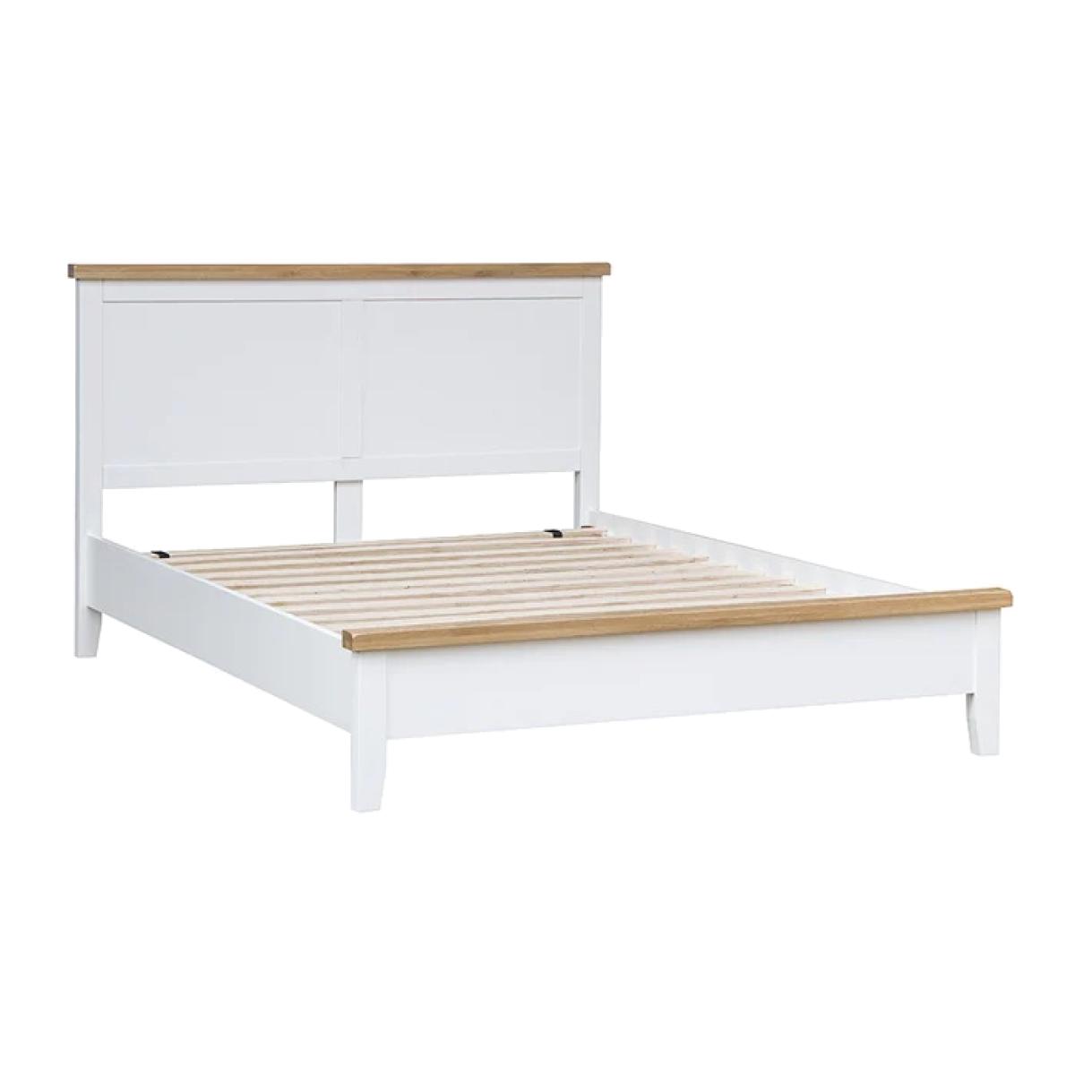 With washed oak tops and a beautifully painted White finish, this bedroom collection seamlessly blends rustic warmth with contemporary design. This Easton Bedframe in White adds a classic but stylish feel to any bedroom. This range is also available in Grey. Features:. *Assembly required. *Available in a White or Grey Finish. *Modern Style Country Design *Made From Solid Oak, Pine Real Veneer Dimensions:. * Double: H 110cm x W 150cm x D 202cm *King: H 110cm x W 166cm x D 202cm All screens vary in colour reproduction and whilst every effort has been made to display the colour as accurately as possible it is for guidance only.