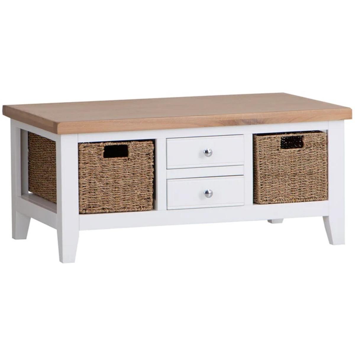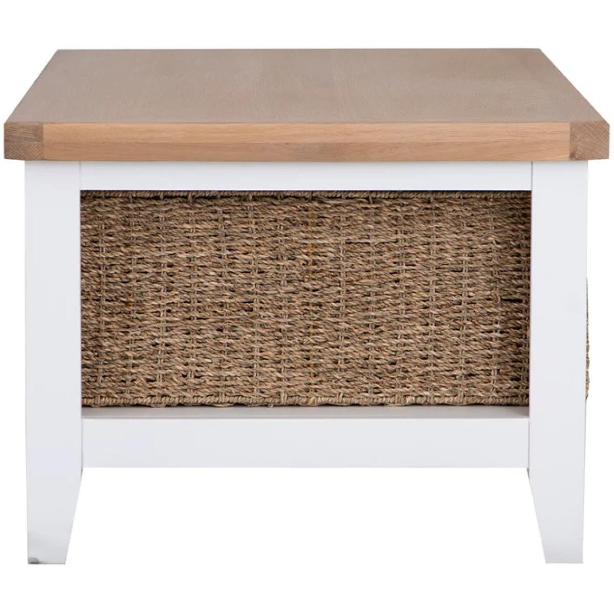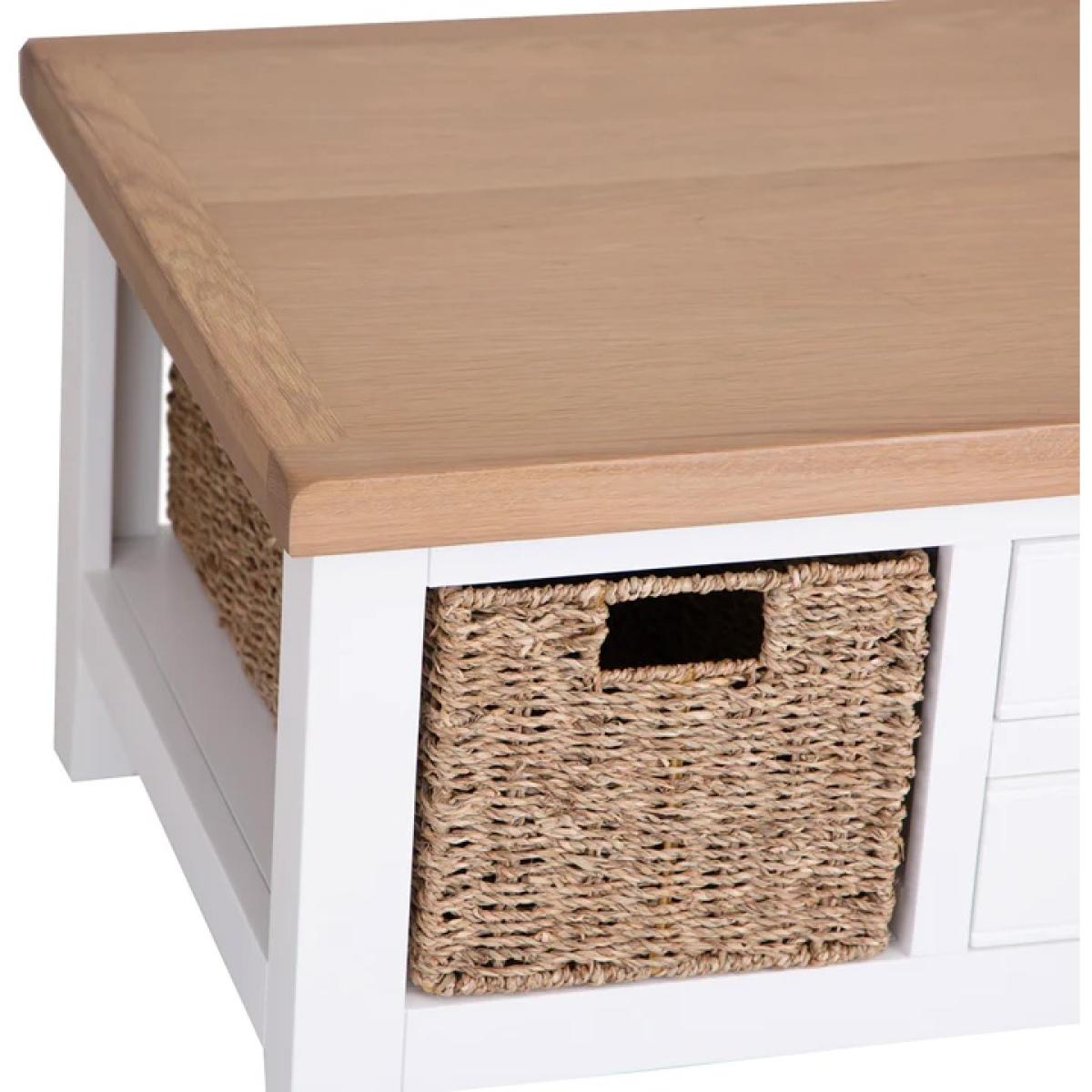 I really like the Easton coffee table's clean, versatile design-its white finish makes it easy to integrate into various interiors, from coastal to Scandinavian styles. The natural wood top adds warmth, preventing it from feeling too clinical, while the woven storage baskets offer practical organisation without cluttering the space. It works well in both traditional and contemporary settings. For styling, try placing a few indoor plants or decorative trays on top to add personality, and use the baskets for magazines or throws to keep the surface tidy. Overall, it’s a functional piece that brings a relaxed, welcoming vibe to your living room.