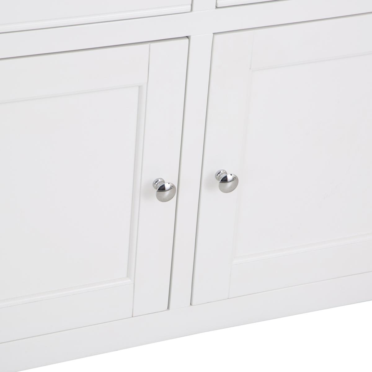 I love this white sideboard for its clean, versatile look that can easily complement both contemporary and traditional interiors. Its understated design makes it perfect for multifaceted spaces such as living rooms, dining areas, or hallways, offering both style and storage. To style it effectively, consider adding a mix of decorative items like vases, picture frames, or bowls on top to create visual interest without overpowering the simplicity. Its neutral palette provides a flexible backdrop for colourful accessories or textured pieces, making it a great focal point or subtle complement within a layered decor scheme. Practical for everyday use, it’s ideal for organising essentials while keeping surfaces tidy.