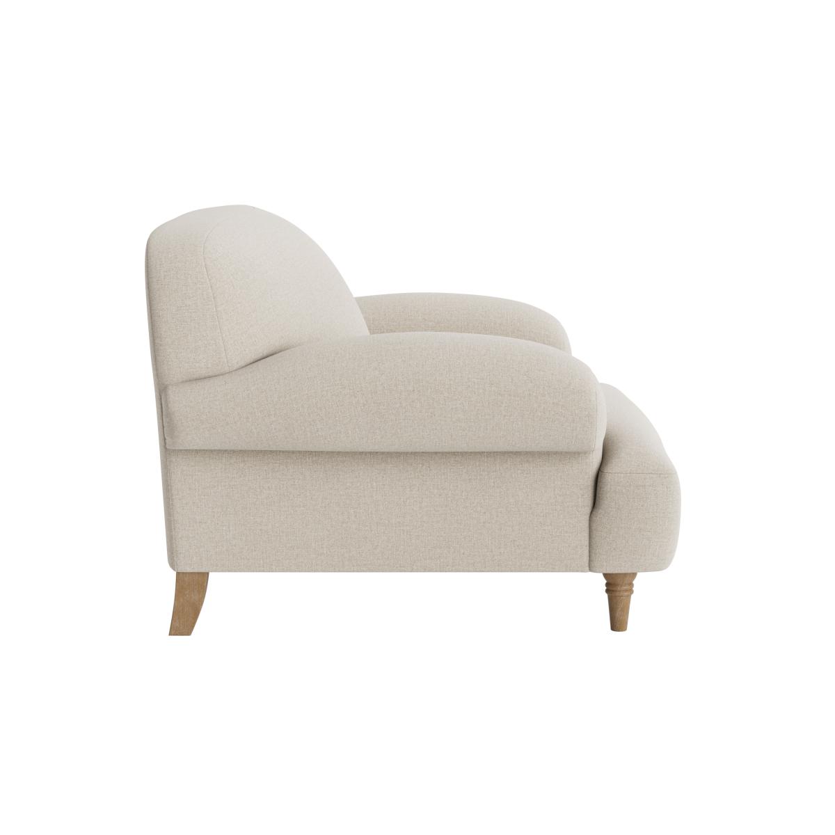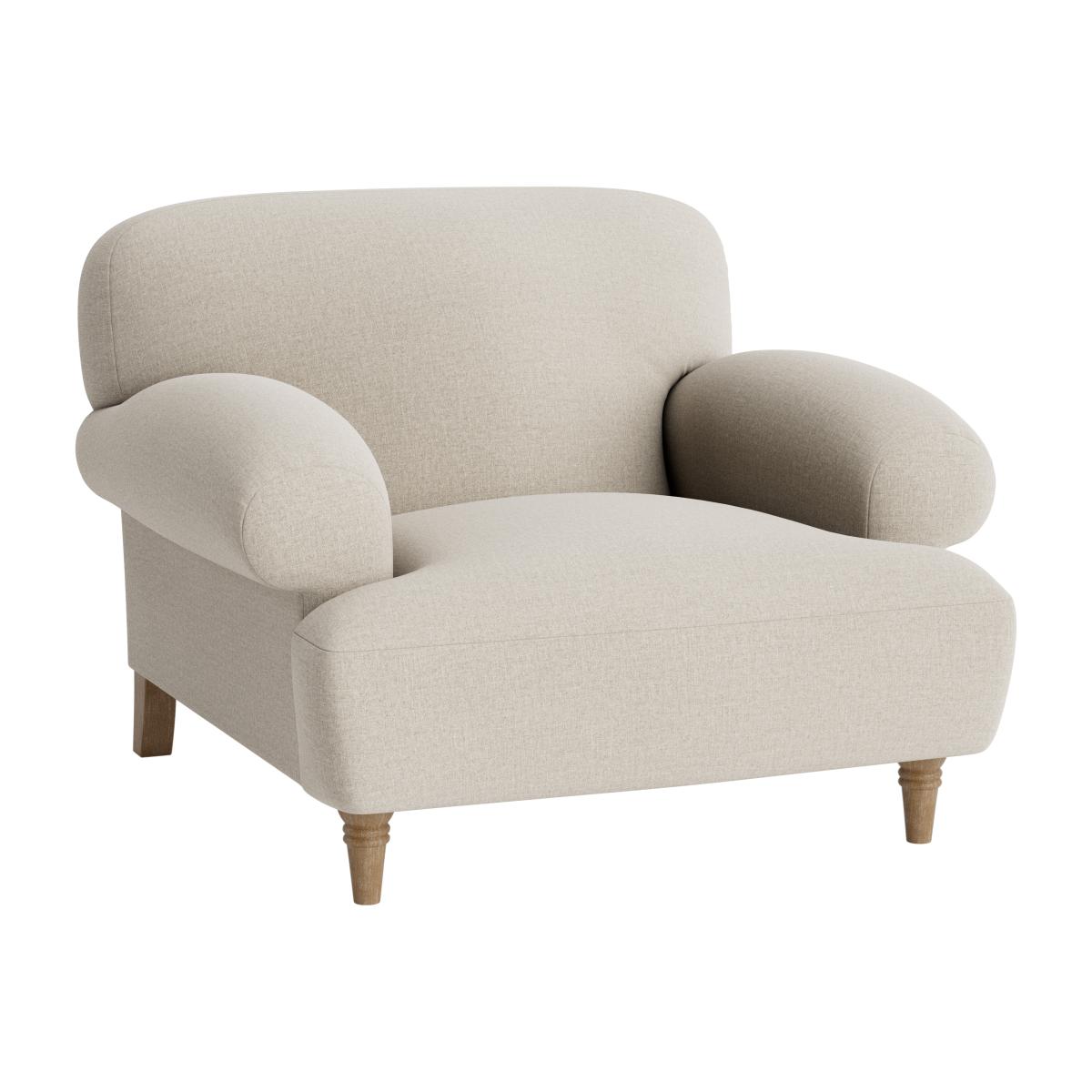 I love this armchair for its understated elegance and practicality. The simple, curvaceous design makes it a versatile piece that can fit seamlessly into both classic and contemporary interiors. It works particularly well in cosy living rooms, reading nooks, or even a bedroom corner. For styling, consider contrasting it with textured cushions or a throw for added comfort and visual interest. Its neutral tone provides a perfect backdrop for bolder accessories or artwork, making it a flexible choice that adapts as your interior style evolves. Practical tip: pair it with a small side table or footstool to maximise comfort without cluttering the space.