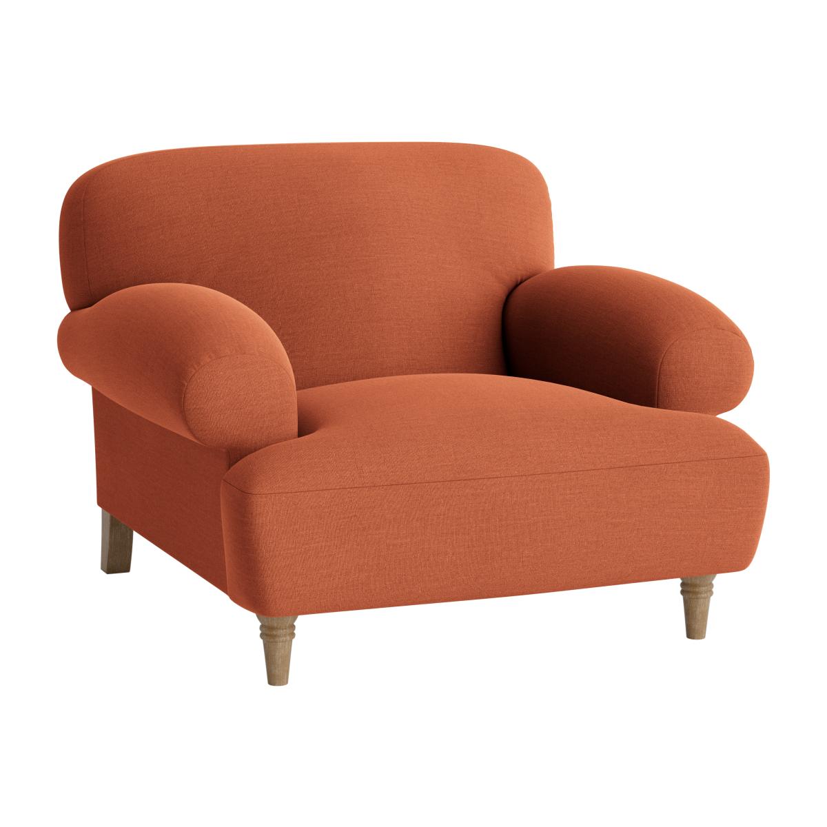 I love this armchair because of its inviting shape and cheerful colour, which can instantly lift a neutral scheme or add warmth to a more eclectic interior. It works well in both contemporary and traditional settings, making it quite versatile for various styles. For practical styling tips, consider pairing it with a textured throw or patterned cushion to add interest and comfort. It’s perfect as a statement piece in a living room corner or as a cosy nook in a bedroom. To keep things balanced, combine it with other soft furnishings in complementary shades or natural wood accents for a cohesive, inviting look.